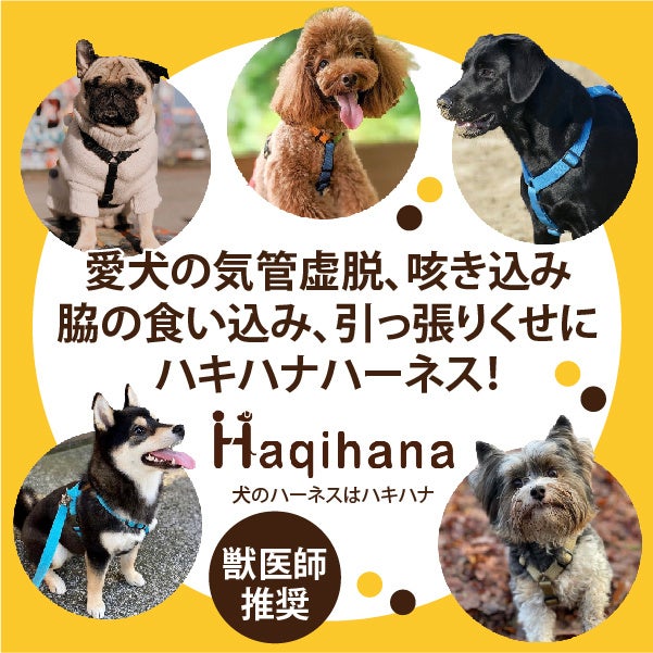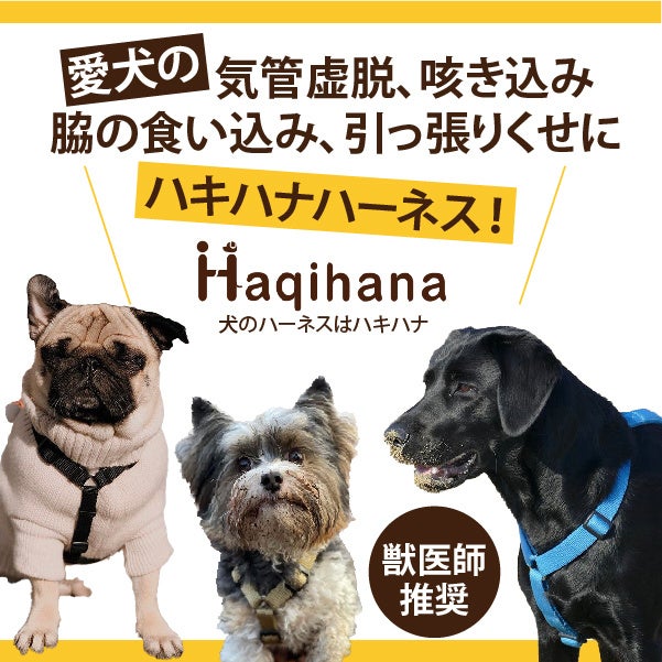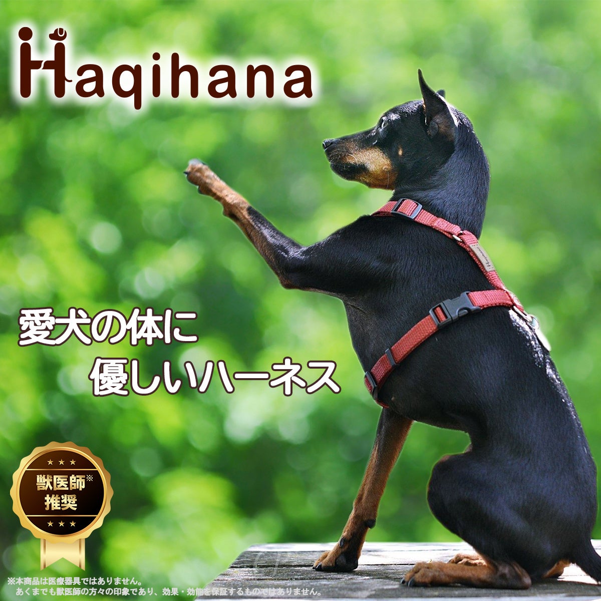 Haqihana(ハキハナ)は犬の骨格を徹底的に研究し作られ、犬の首や気管に負担をかけないのはもちろんのこと肌の擦れ、脇の食い込み、その他痛みや拘束感を与えにくいイタリア製の犬のハーネスです。