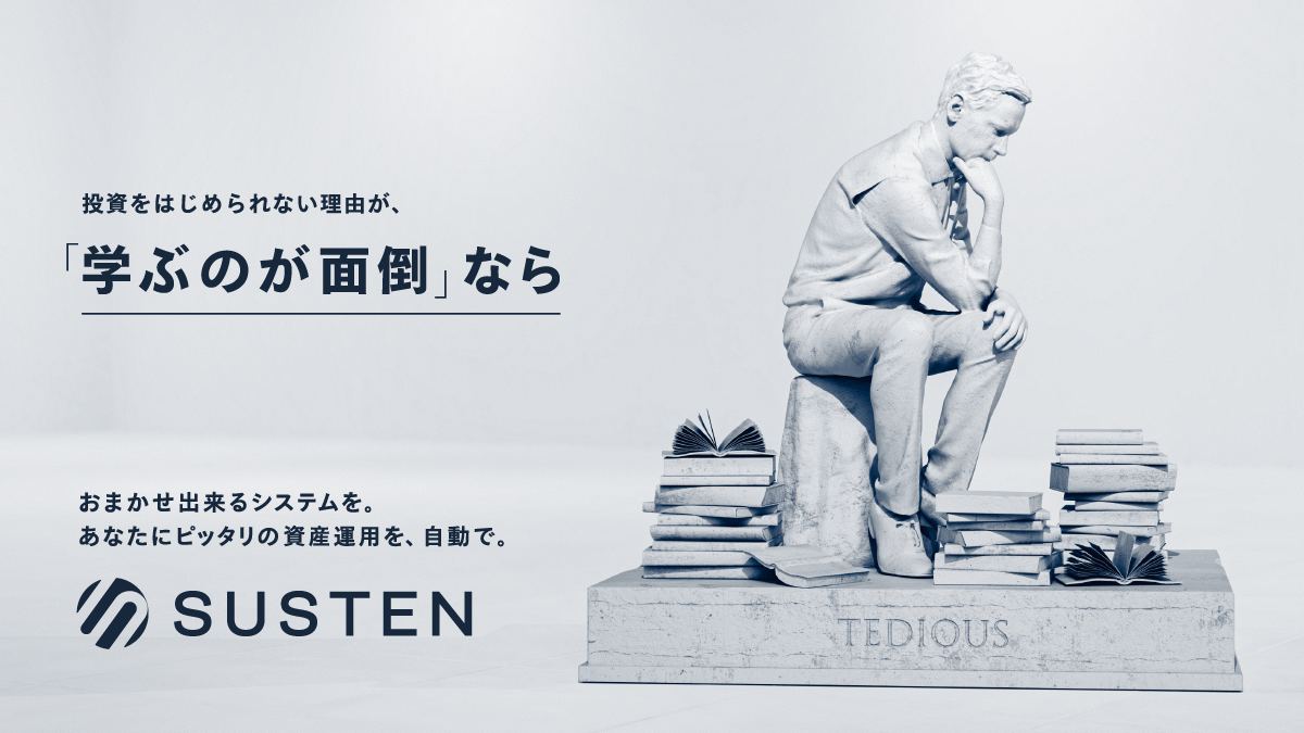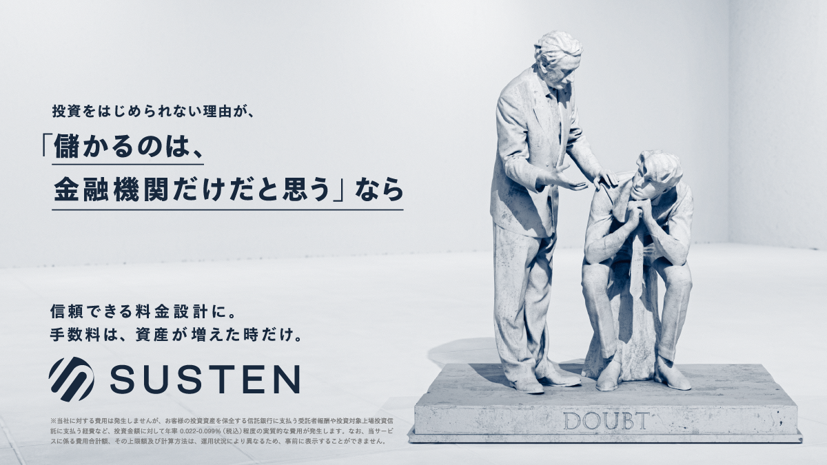 株式会社sustenキャピタル・マネジメント(サステン・キャピタル・マネジメント、本社:東京都港区、代表取締役: 岡野大・山口雅史)は、おまかせ資産運用サービス「SUSTEN(サステン)」のサービスサイト(https://susten.jp/003emli/)をリニューアルしました。独自の運用手法や完全成果報酬型の費用体系について、投資が初めての方にも分かりやすく、より直観的にお伝えしています。ウェブCMも公開中です。