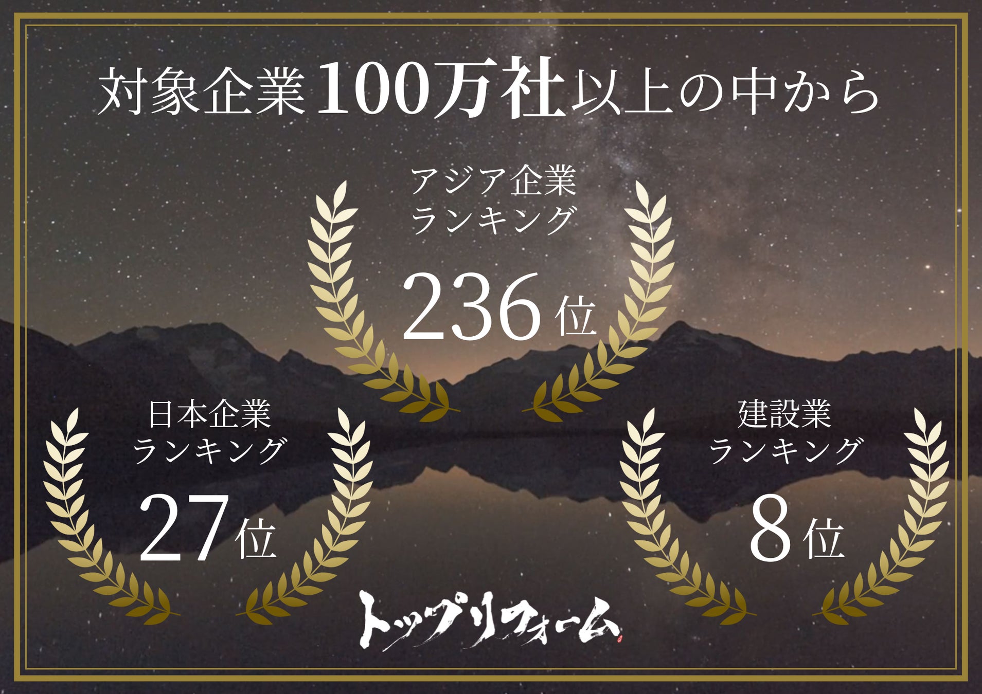 本ランキングは、アジア太平洋地域13か国の100万以上の企業を対象に、2020年から2023年の売上成長率を基準として急成長企業500社を選出するもので、トップリフォームは全体で236位、日本企業の中で27位、建設業界で8位という評価を受けました。