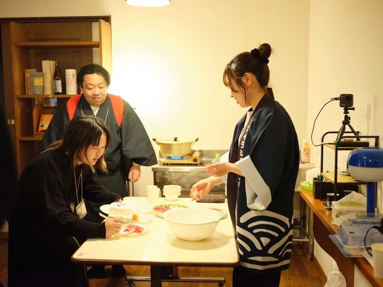 トーク後には、島の海産物を使った寿司の実演や、五島手延うどんの「地獄だき」を囲む交流会を実施。