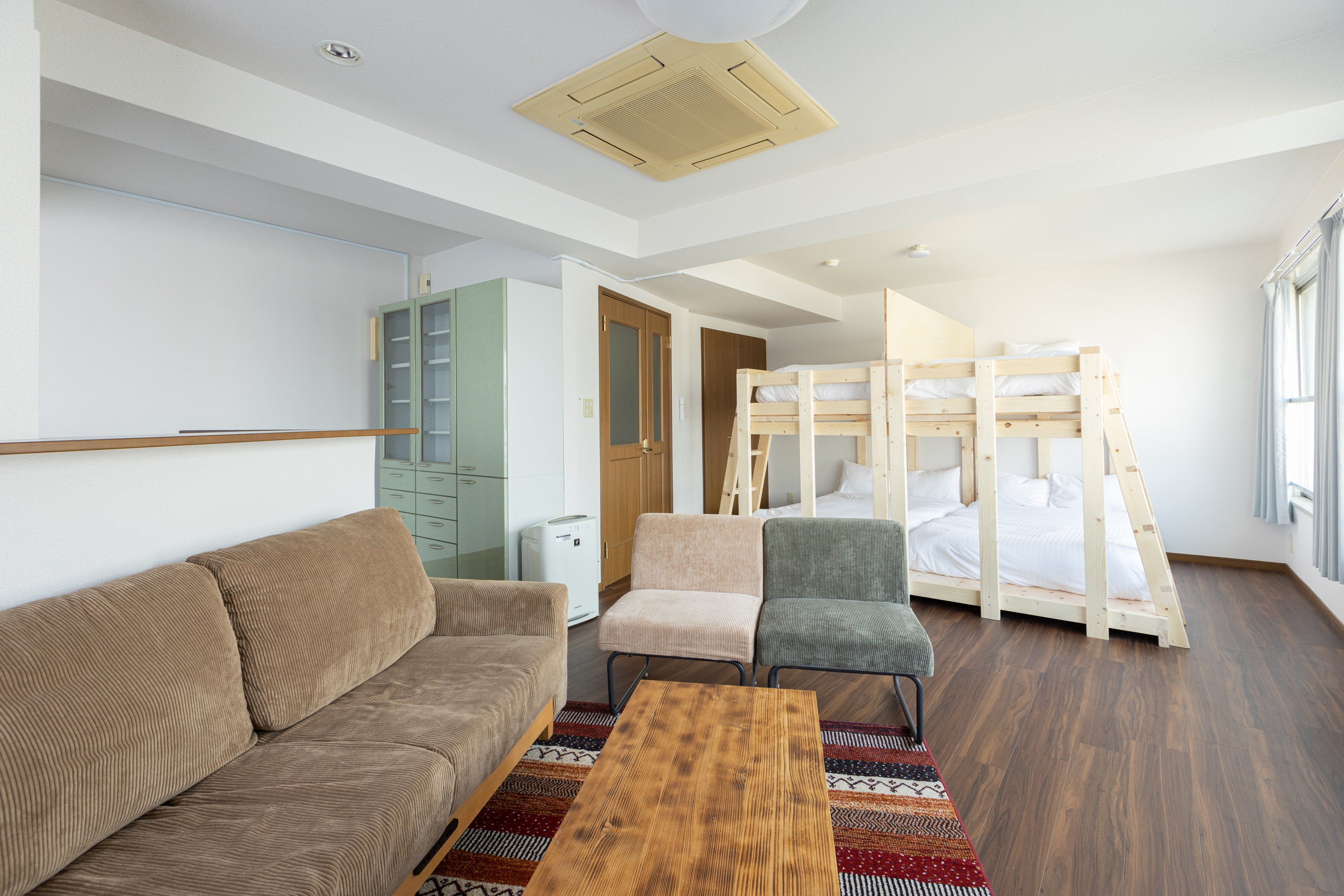 ・2段ベッドルーム(下:セミダブル、上:シングル)
