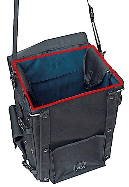 そして「八咫鴉」のビジネスリュック的側面を補うべく、「石火」の主気室にはノートPCを保護するため全面にクッションを入れて、寸法は「八咫鴉」にピッタリと収まり且つ15.6インチのノートPCを入れても余裕があるサイズ(幅28.5cm×高さ37cm)になっています。