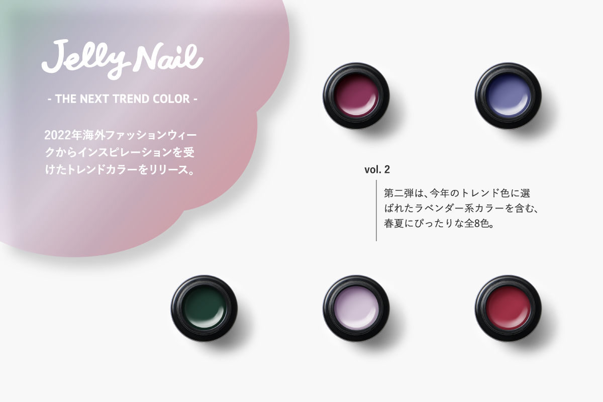 セルフジェルネイルブランド「Jelly Nail(ジェリーネイル)」より、新カラープロジェクト「THE NEXT TREND」の新色が発売されます。