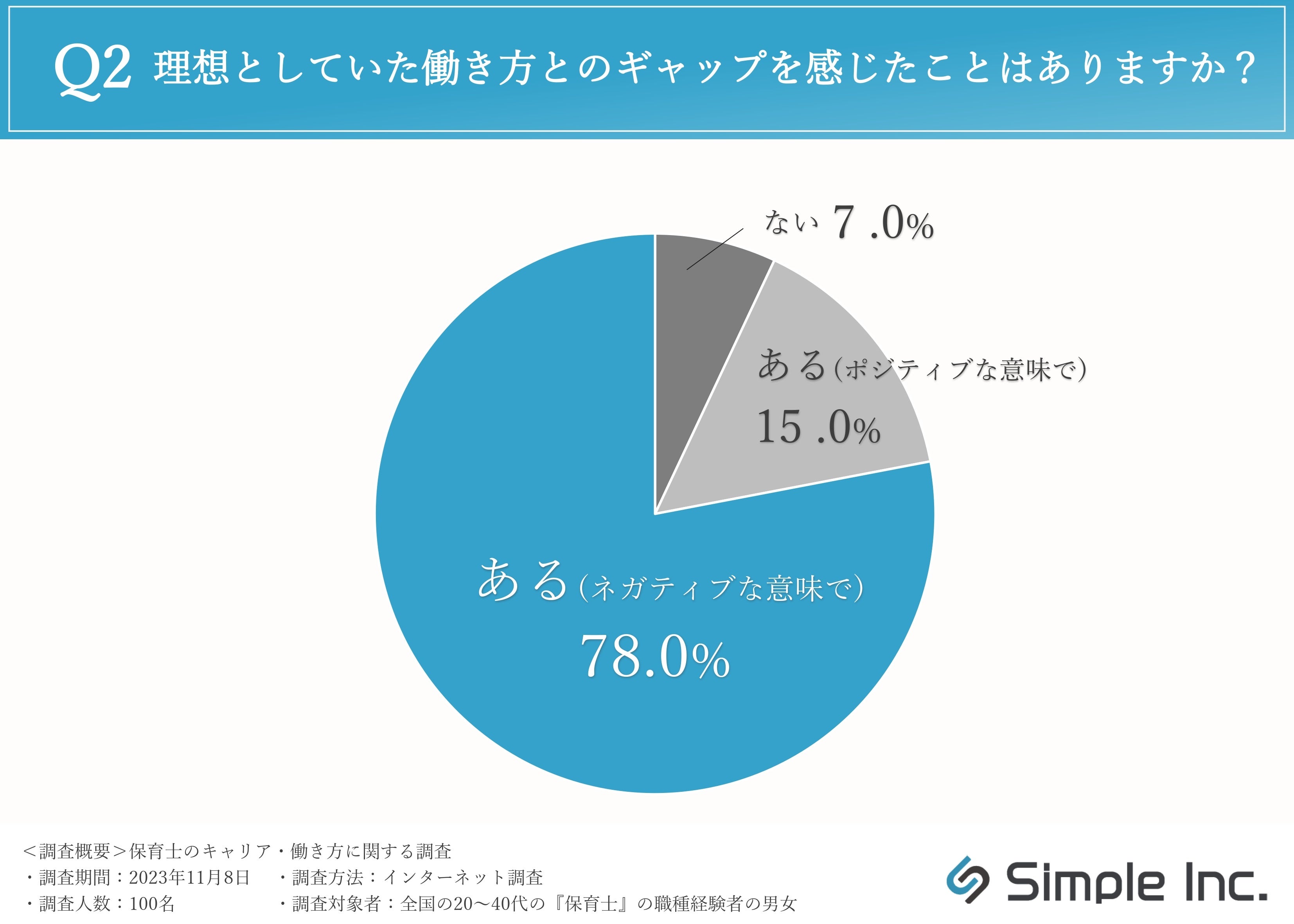 多くの方は、ネガティブな意味でのギャップを感じており、日本全体で保育士不足と言われる現状とも関係があるかもしれません。