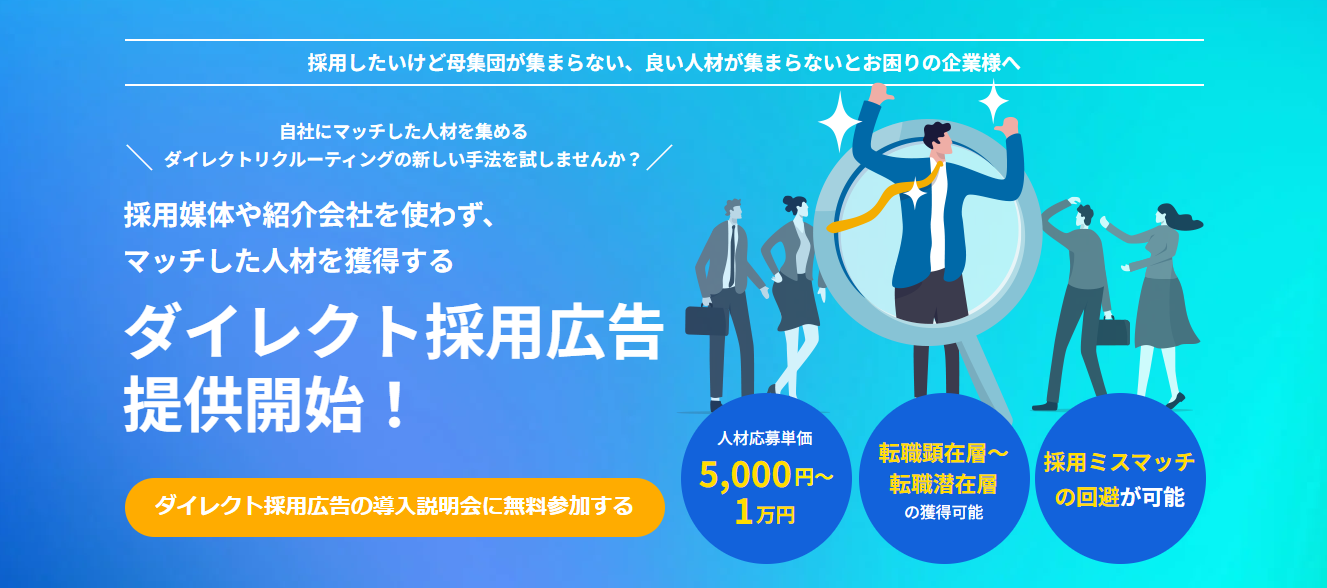採用媒体や紹介会社を使わず、自社にマッチした人材を獲得する「ダイレクト採用広告」提供開始!