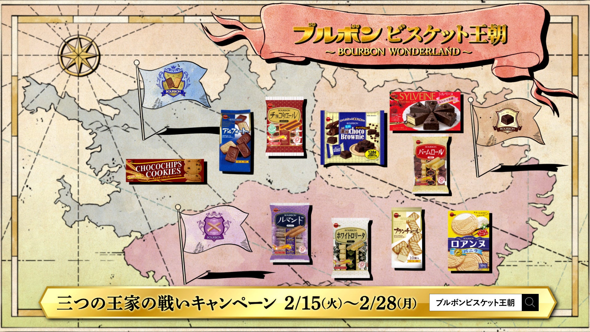 いずれかに投票する「ブルボンビスケット王朝 三つの王家の戦いキャンペーン」を開催します。