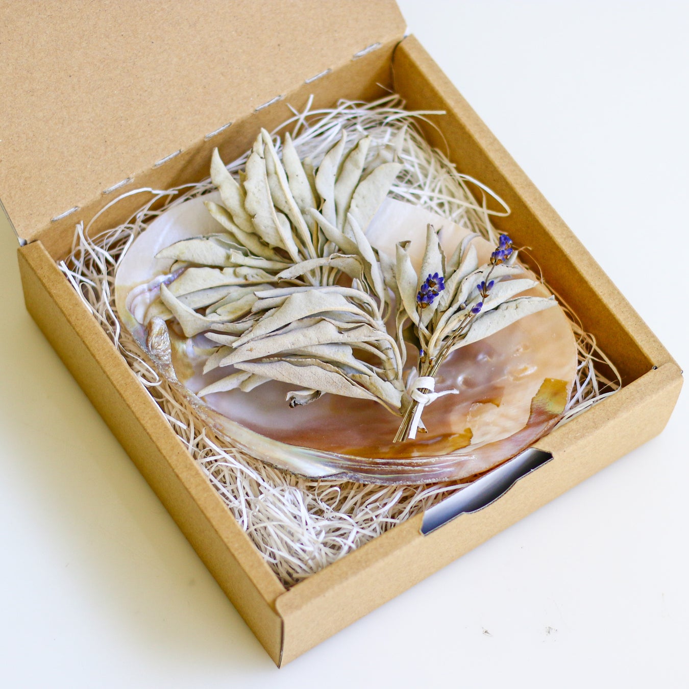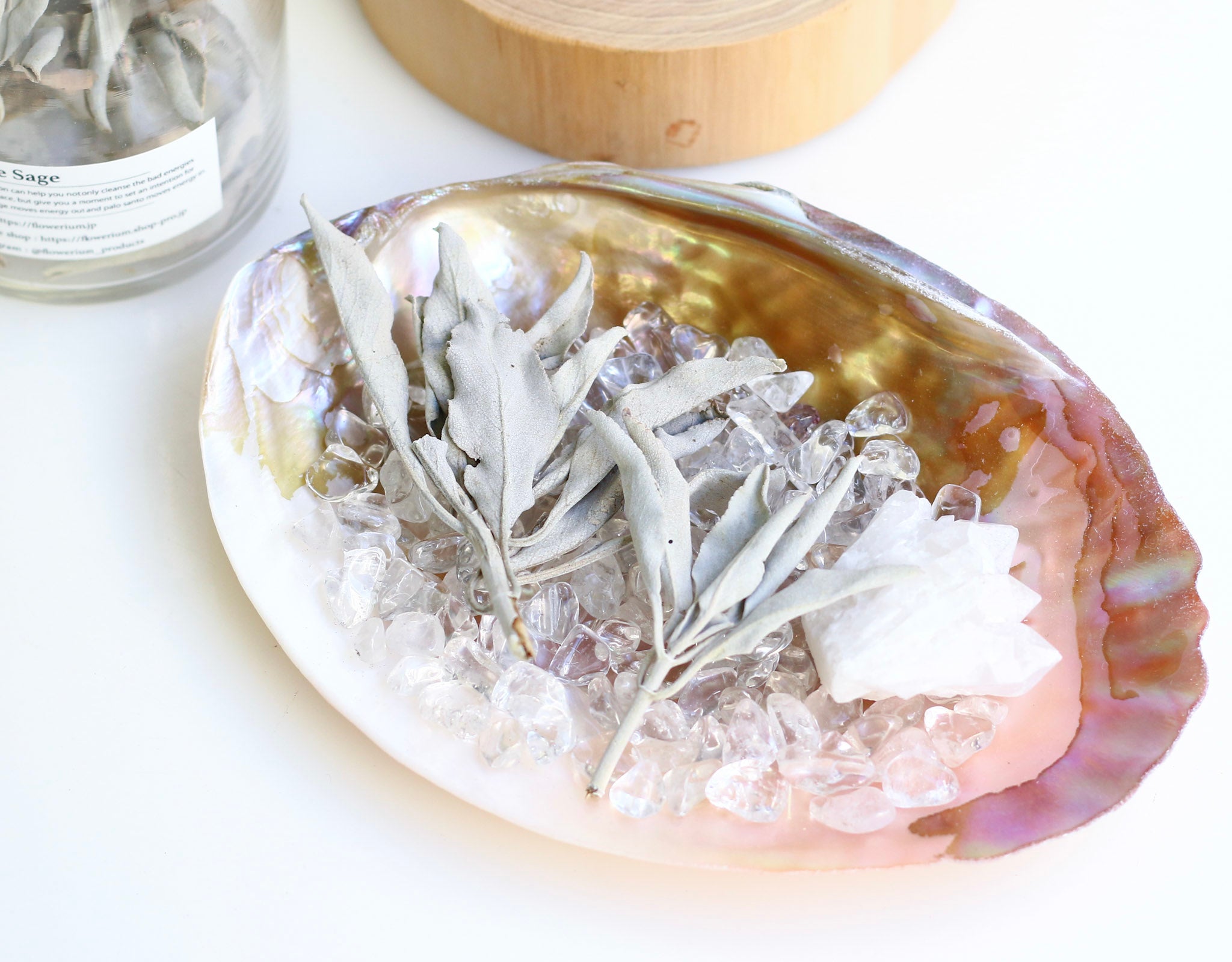 ホワイトセージとオーロラカラーの貝殻プレートがセットになった、ホワイトセージ初心者の方にぴったりのスターターセット。インテリアのアクセントにもなり、浄化のある暮しを手軽に始めたい方にオススメのセットです。