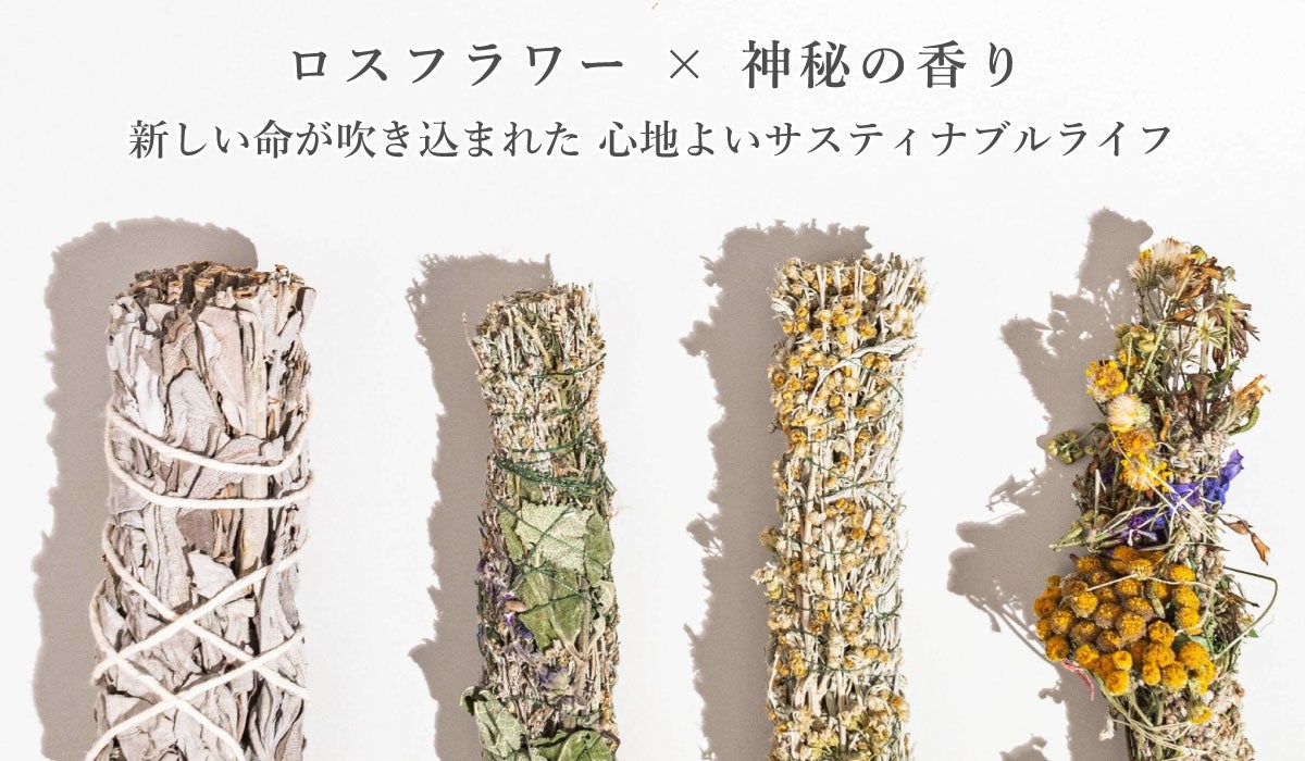 【2022年4月6日(水) 公式オンラインショップにてリリース】神聖な香りと浄化力が魅力のホワイトセージやロスフラワーを使用したアイテムなど、お家時間を上質にするサステナブルなアイテムを販売致します。