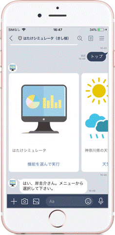 利用者個別に提供される専用のLINEアカウントを友だちに追加すると、LINE上のチャットでデータ表示・積算シミュレータ・積算気温の予測通知などの機能を利用できます。