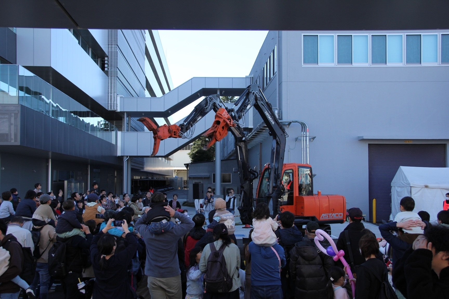 当日は土浦工場内の見学のほか、油圧ショベルやホイールローダなど建設機械の展示・操縦体験、双腕仕様機アスタコのデモンストレーションとトークショーを行います。毎回恒例のじゃがいもの詰め放題や、各地元商工会のご協力のもと地域の物産・軽食販売も実施します。さらに、お子さま向けのゲームコーナーやキャラクターショー、豪華景品が当たる大抽選会などご家族でお楽しみいただける企画を盛りだくさんにご用意しております。