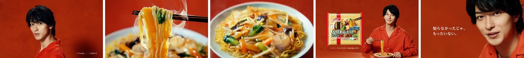 本シリーズCMでは、2021年の春から引き続き、人気俳優の横浜流星さんを起用し、冷凍食品「五目あんかけ焼そば」のおいしさを余すことなく表現していただきました。