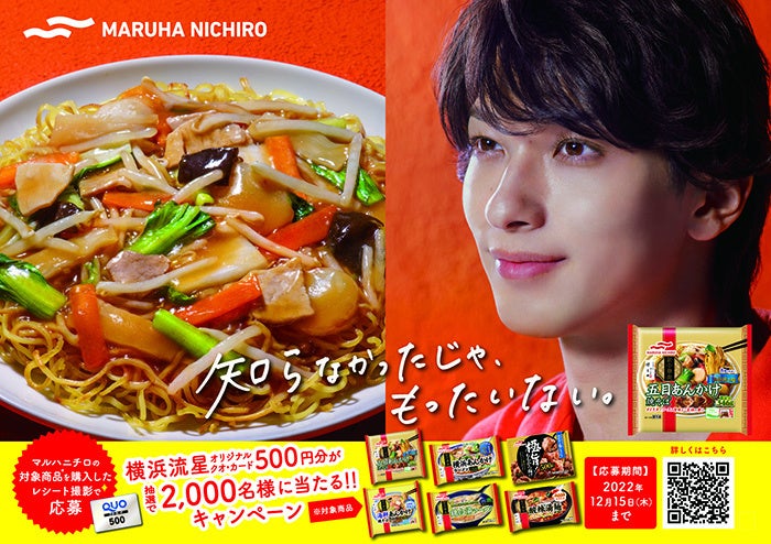マルハニチロ株式会社(本社所在地:東京都江東区、代表取締役社長:池見 賢)は、俳優の横浜流星さんを起用した、冷凍食品「新中華街®」シリーズ「五目あんかけ焼そば」の新TV-CM「知らなかったじゃ、もったいない」篇を10月21日(金)より放送開始いたします。