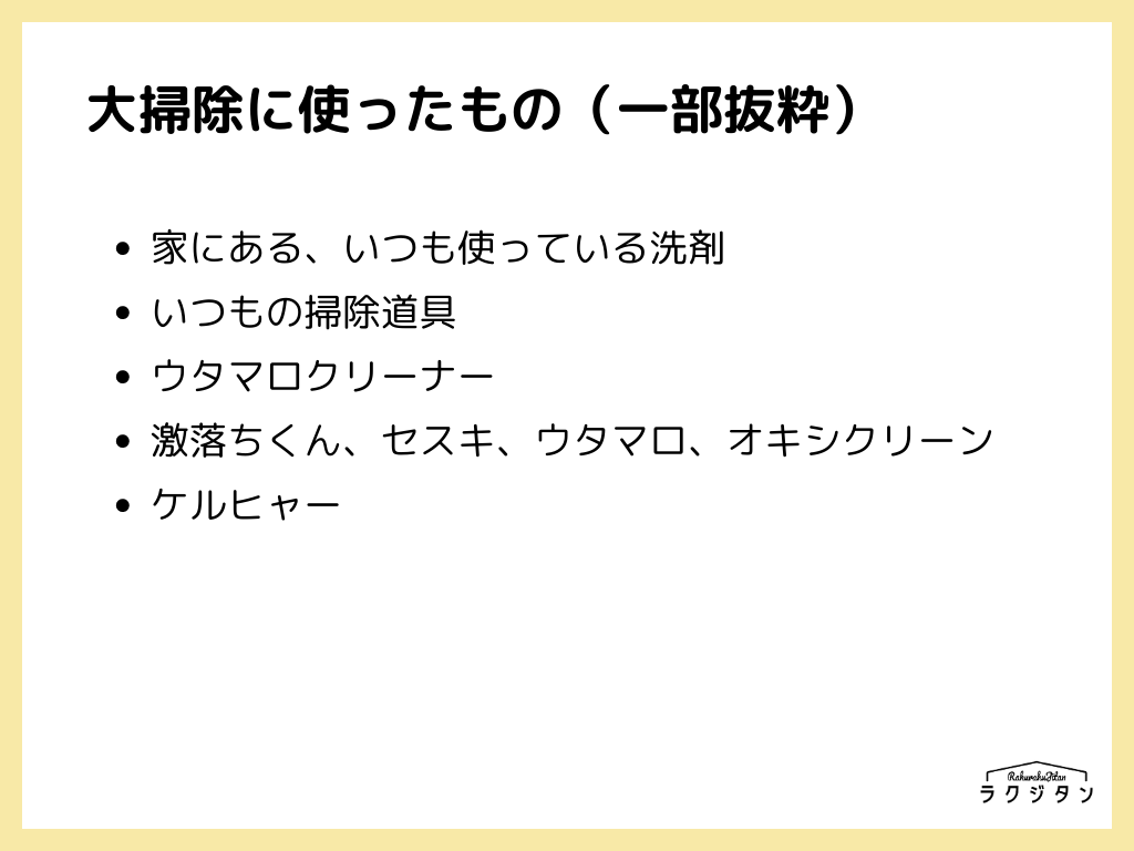- 激落ちくん、セスキ、ウタマロ、オキシクリーン