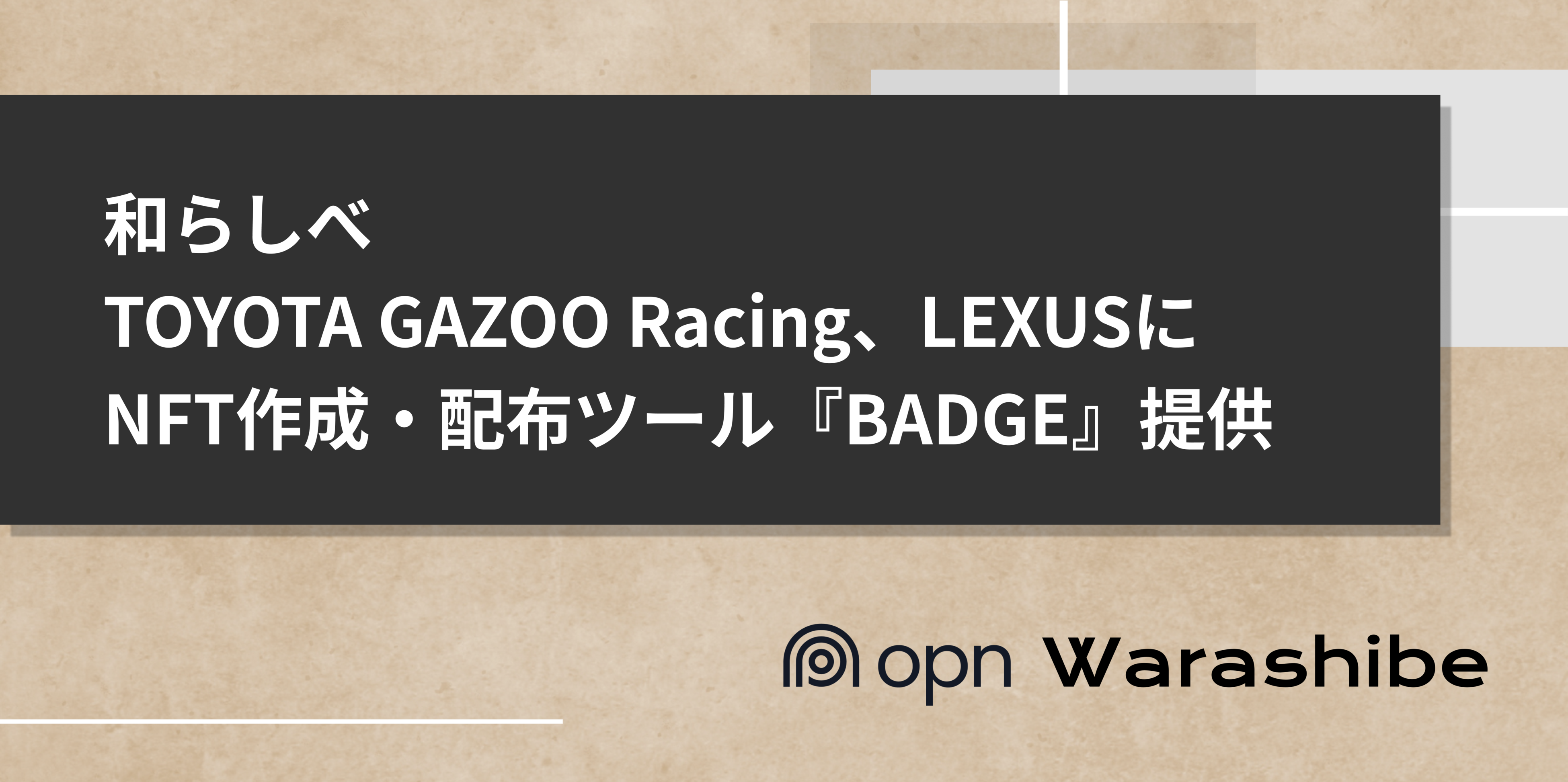 株式会社和らしべ(大阪市東成区、代表取締役CEO: 井元 秀彰)は、誰でも簡単にわずか1分でNFTを作成・配布することができるノーコードツール「BADGE」を、TOYOTA GAZOO Racing(以下、TGR)、LEXUSへ提供します。1月13日から幕張メッセで開かれる「東京オートサロン 2023」に出展するTGRや同社協賛企業様のブースで各社のオリジナルNFTを配布する「NFTデジタルスタンプラリー」が実施されます。