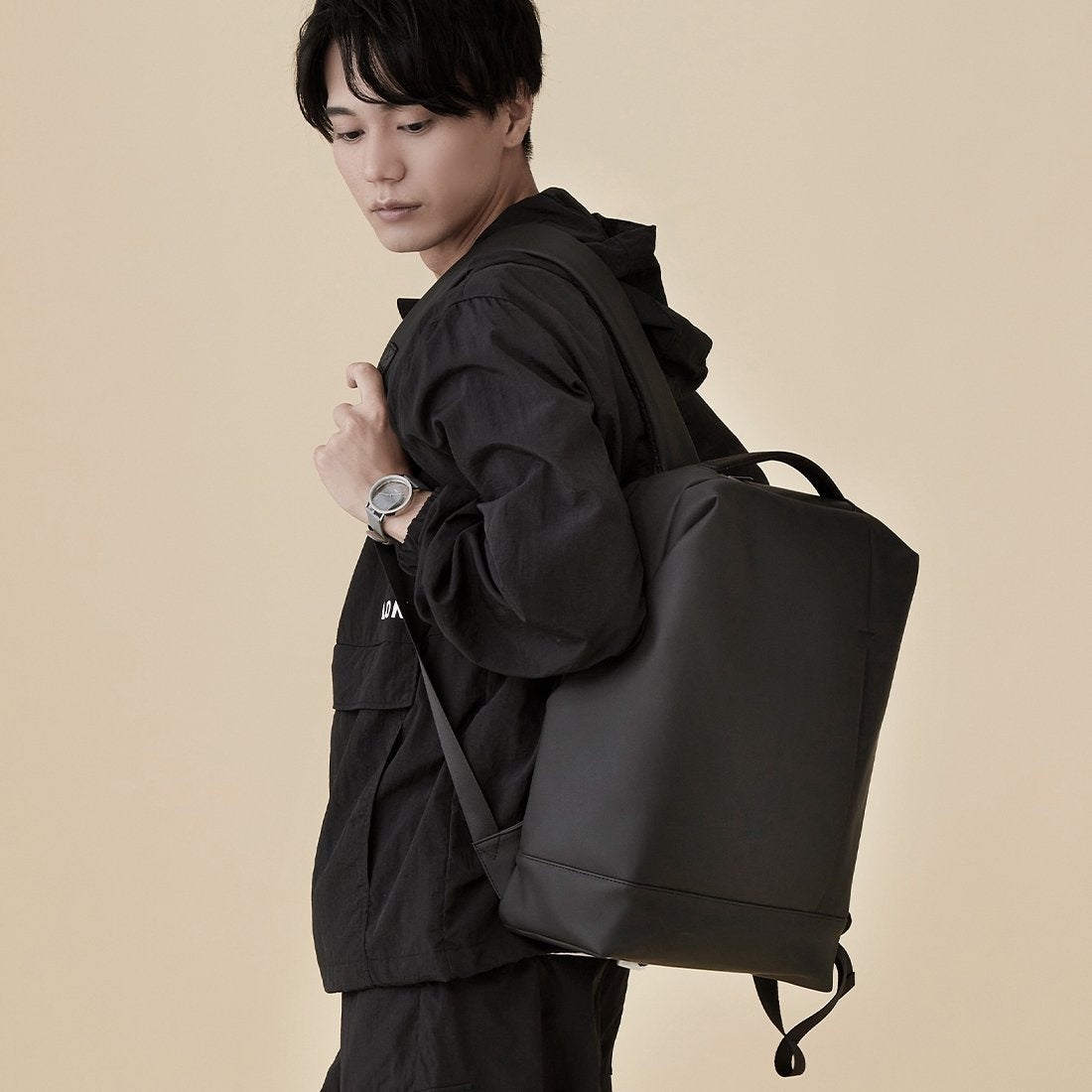■装飾を廃したスクエアフォルムで、極限までシンプルに仕上げたバックパック
