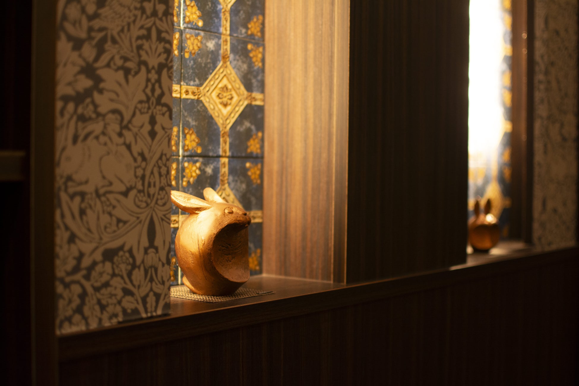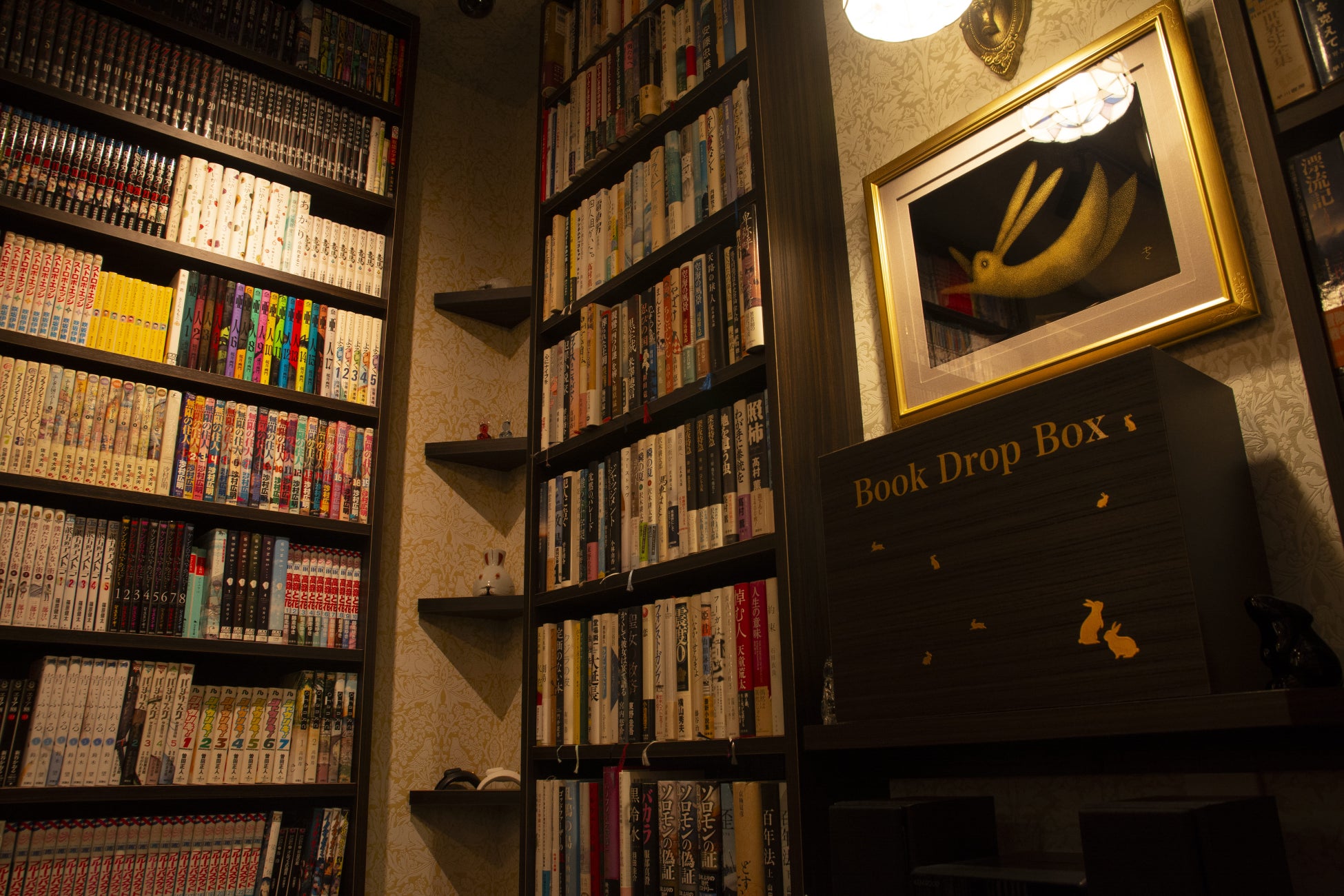 うさぎをこよなく愛した金沢を代表する小説家・泉鏡花を意識しつつ和と洋が強く主張しあったアンニュイな雰囲気のライブラリー。ルイ・アームストロングの軽快なトランペットのBGMが流れる中、ライブラリー内のかわいいうさぎ達がお客様を不思議で素敵な世界へと誘ってくれるはずです。