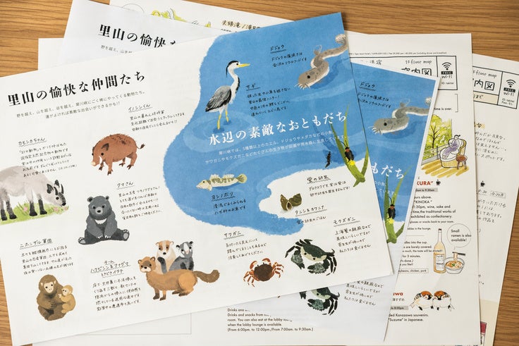 スタッフと一緒になって、いかに里山を体験してもらえるかを考えて実行しています。里山には珍しい植物や動物もいます。散策マップを作って自然のアトラクションを楽しんでもらったり、宿のテラスに足湯を設置して2本の滝を眺められるようにしたりと、様々な施策を打っています。