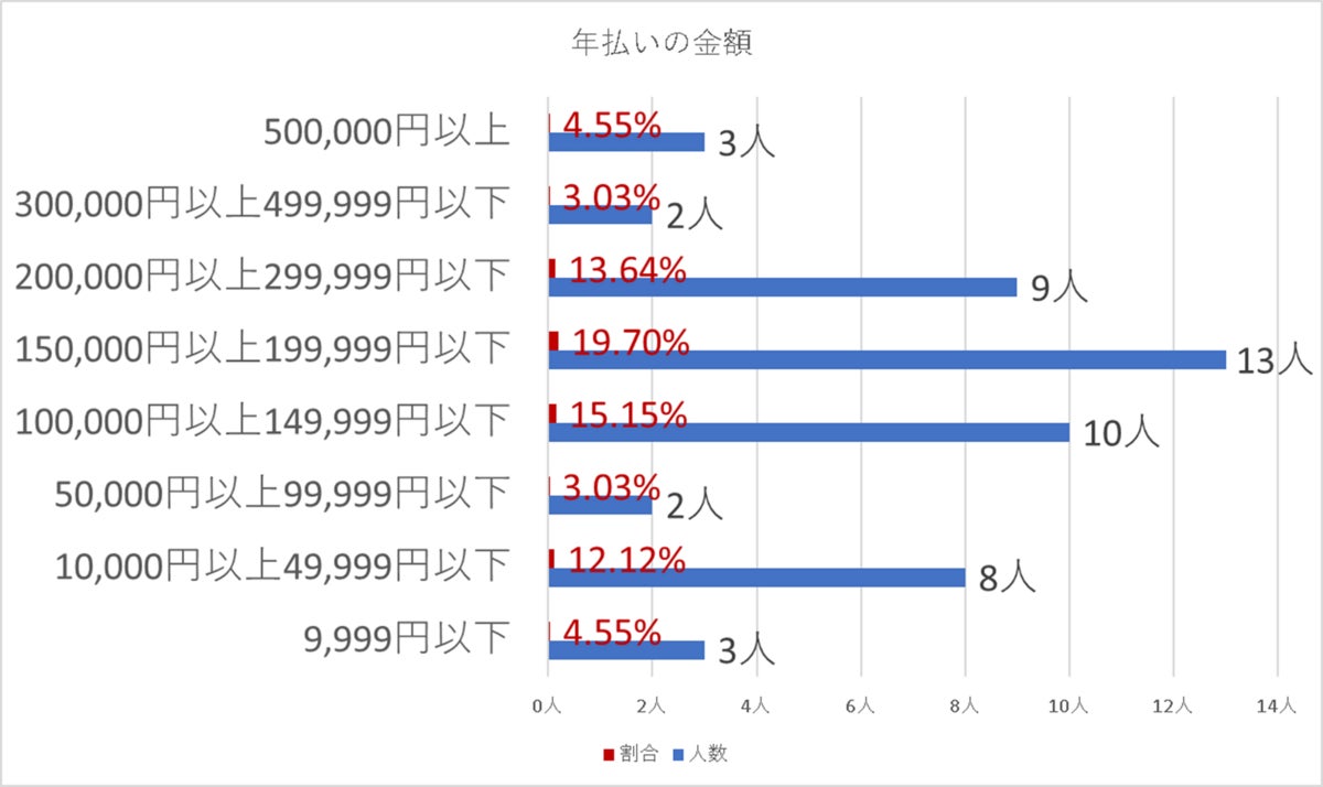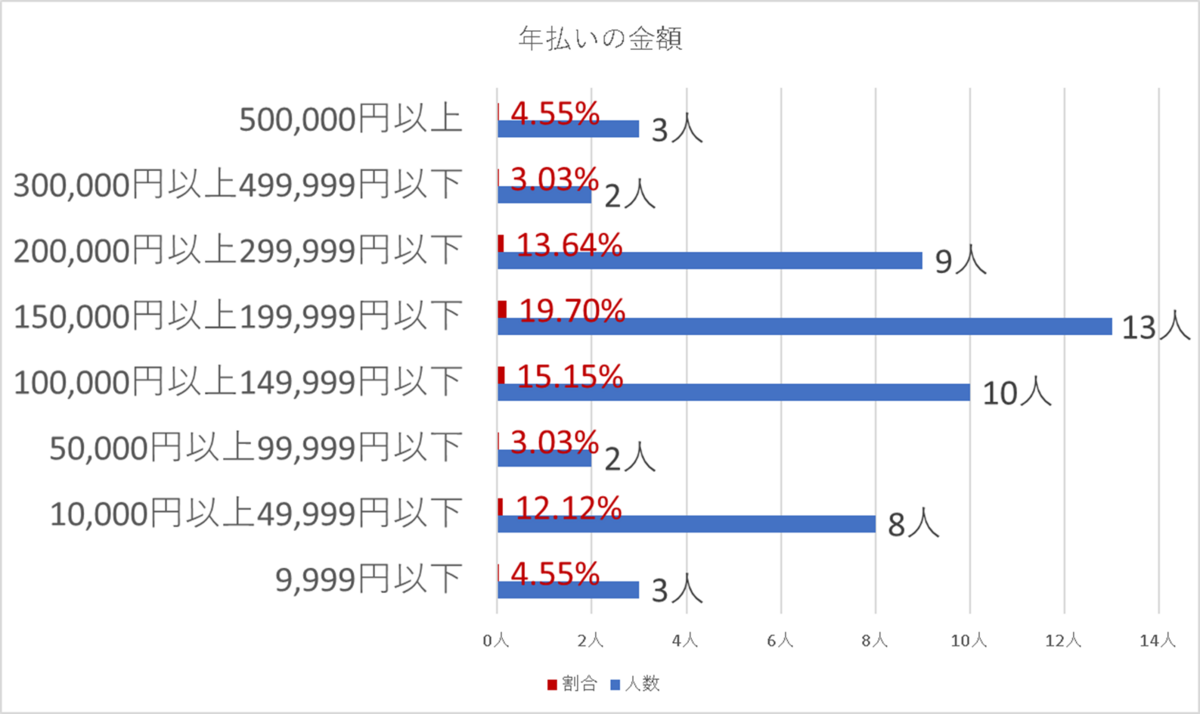 それぞれの支払い方法(毎月・半年・年・前納)別でいくらくらいの保険料を払っていたのか聞きました。