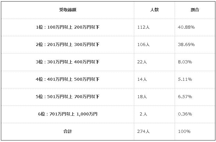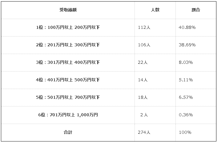 受取総額1位は「100万円以上200万円以下」の40.88%