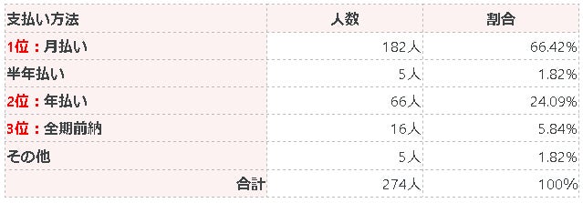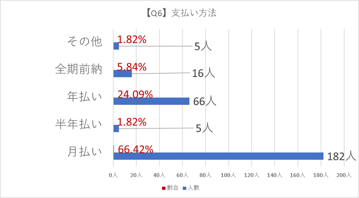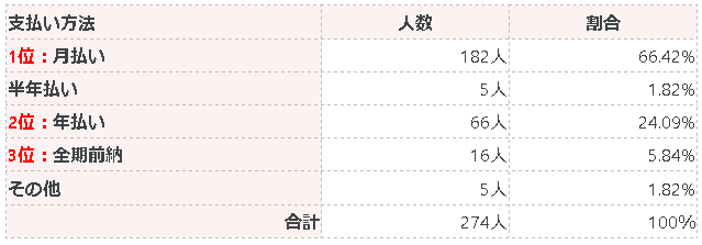 結果は、やはり予想通り月払いが全体の66%と最多でした。