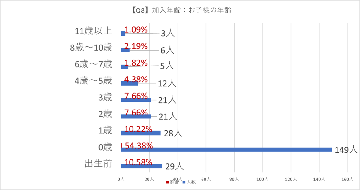 【Q8】学資保険は子どもが「0歳」に加入している方が54%で1位