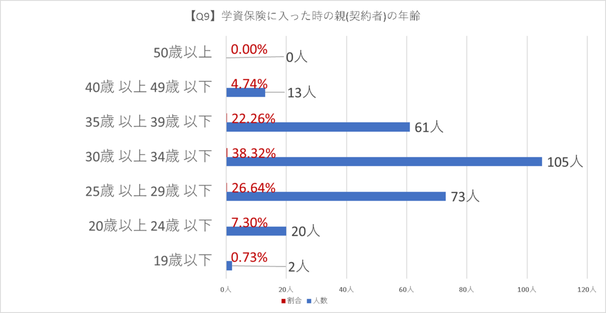 【Q9】学資保険に入った時の親(契約者)の年齢