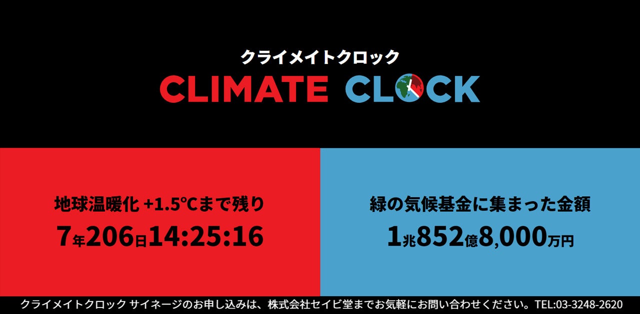 株式会社セイビ堂(本社:茨城県鹿嶋市、代表取締役社長:阿部慎也)は、気候危機による壊滅的な地球の未来を回避するため、【クライメイトクロック 】カウントダウンタイマー デジタルサイネージ用コンテンツの無償提供を行います。