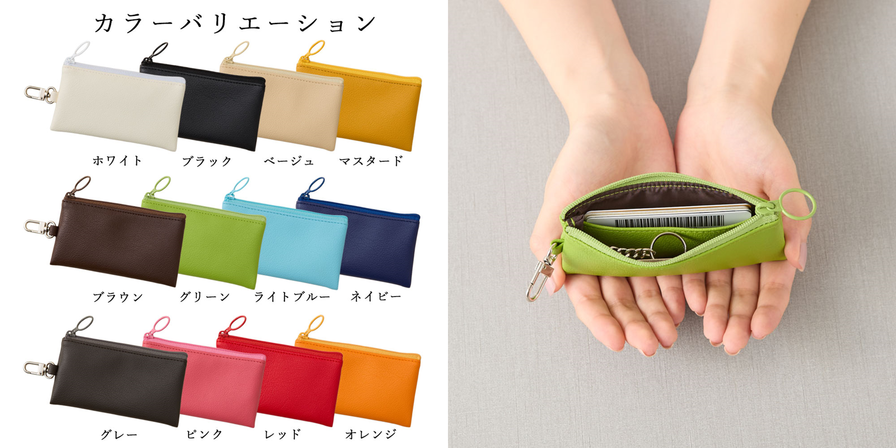 内部には仕切りとキーチェーンがあり、カード類と鍵が分けて収納できますので、出し入れがスムーズにできます。