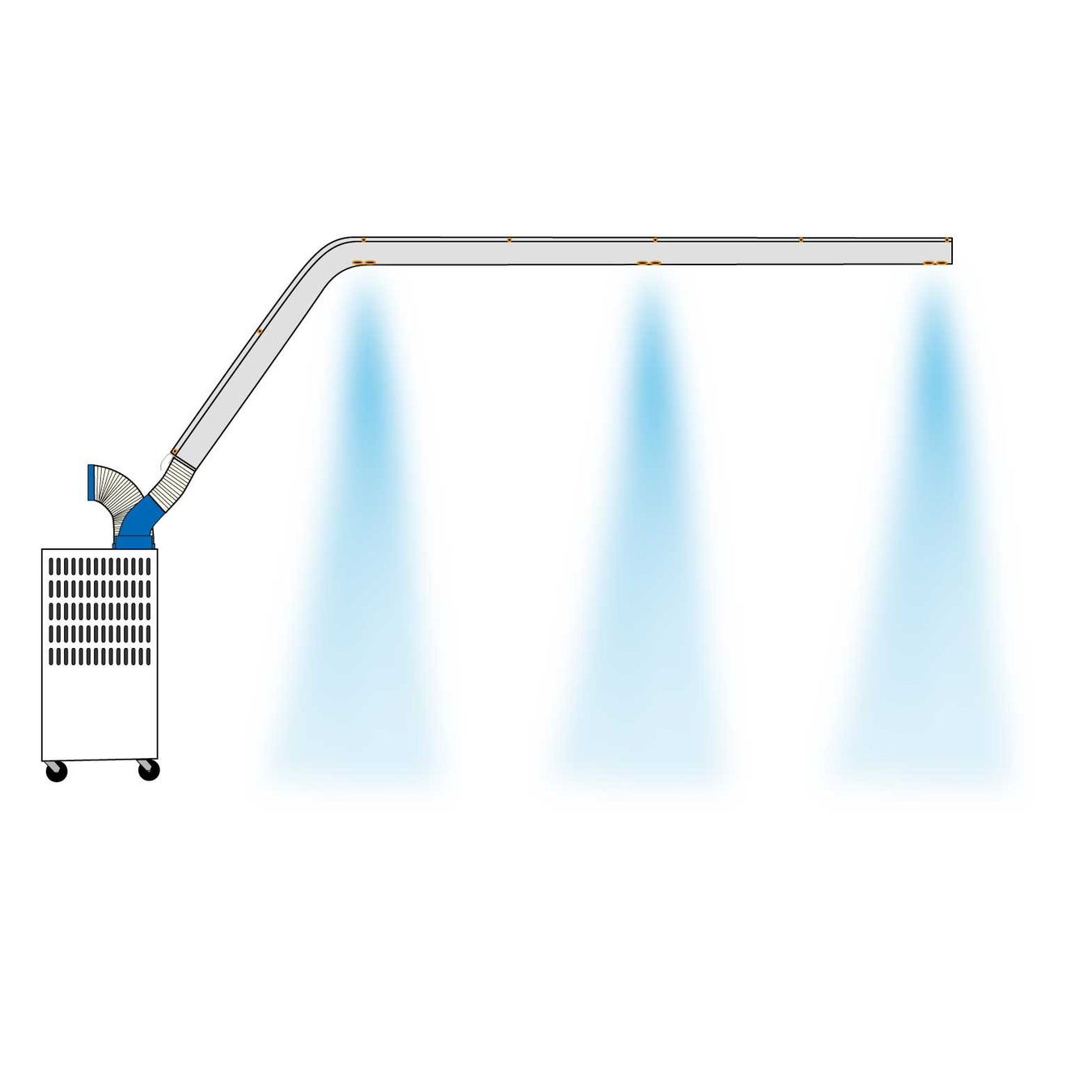 スポットクーラー1台の冷風を効率的に複数箇所に分散
