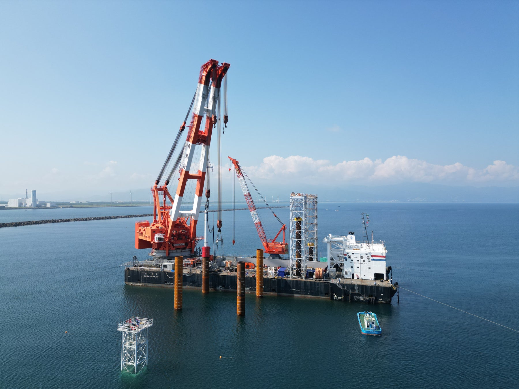 洋上での杭工事を完了