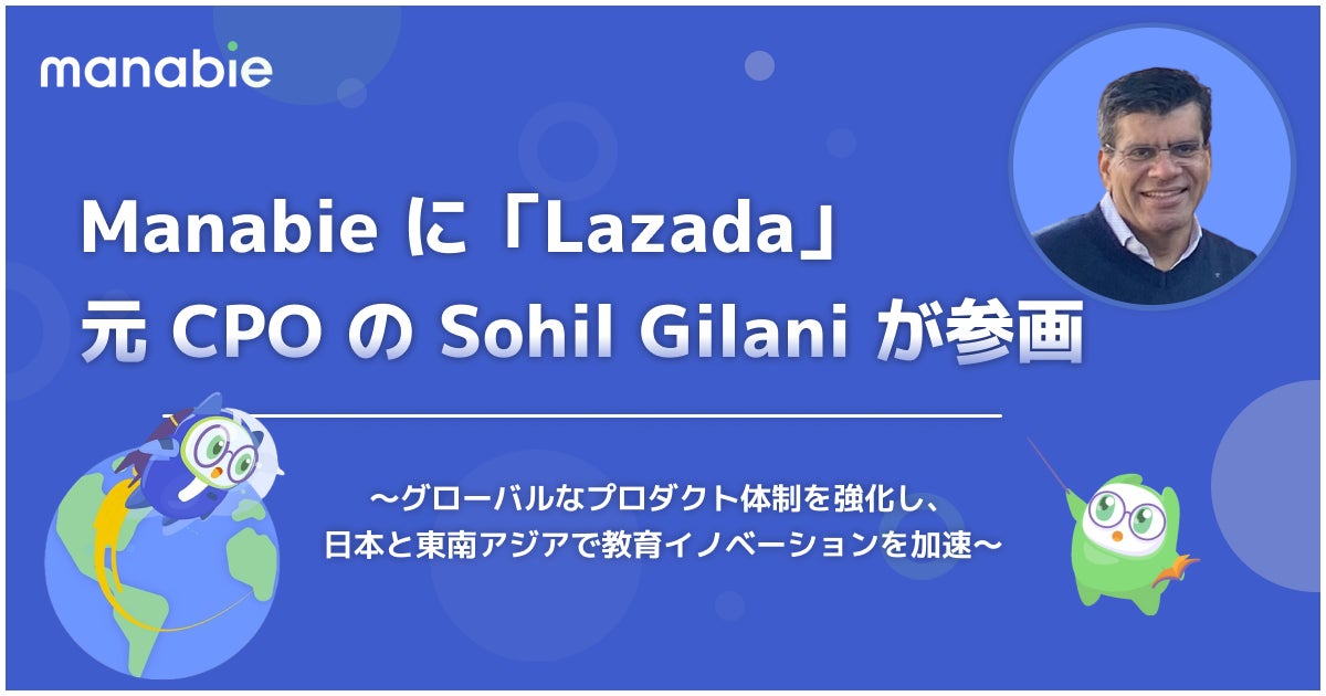 “教育DXで一人ひとりの可能性を最大限に引き出す”をミッションに教育DXプラットフォームを提供するスタートアップ企業Manabie International Pte. Ltd.(本社:シンガポール、Co-founder/CEO:本間 拓也、以下 Manabie)は、アリババグループ傘下で東南アジア最大のEコマース企業Lazadaの元Chief Product Officer(CPO)であるSohil Gilaniが、2025年5月よりManabieの新たなChief Product Officerに就任したことをお知らせいたします。