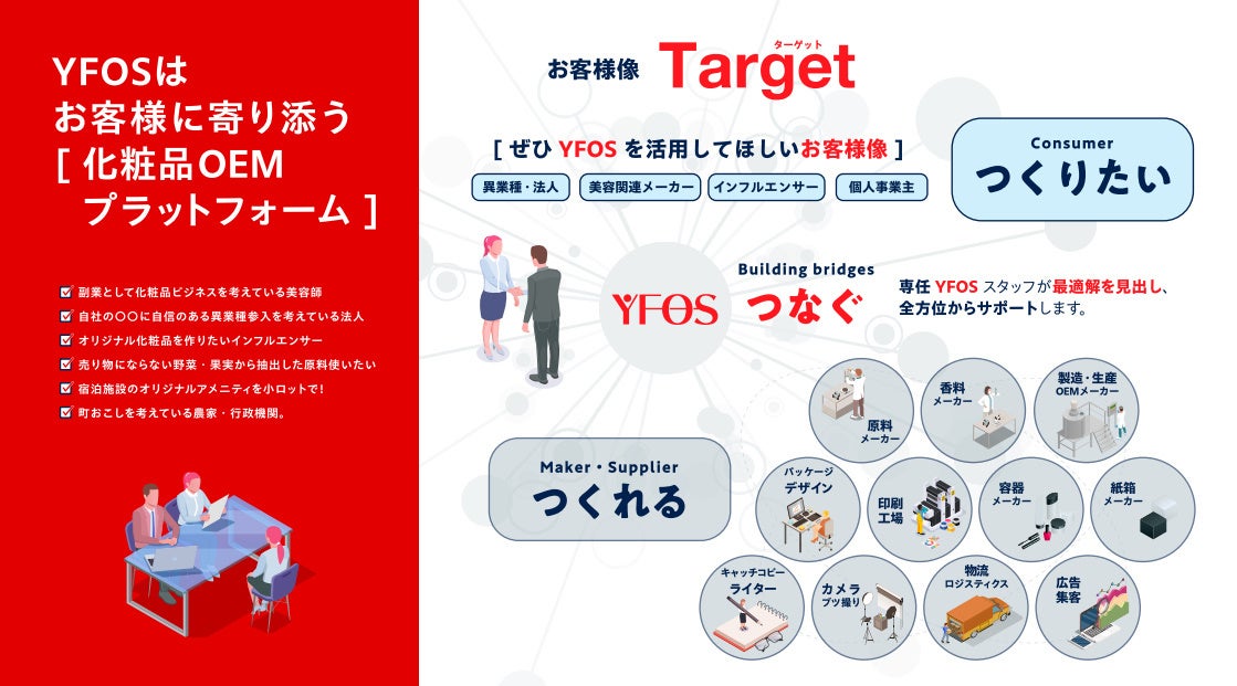 「あなたの夢を形に」100個から作れる化粧品OEMプラットフォーム~YFOS~がローンチ