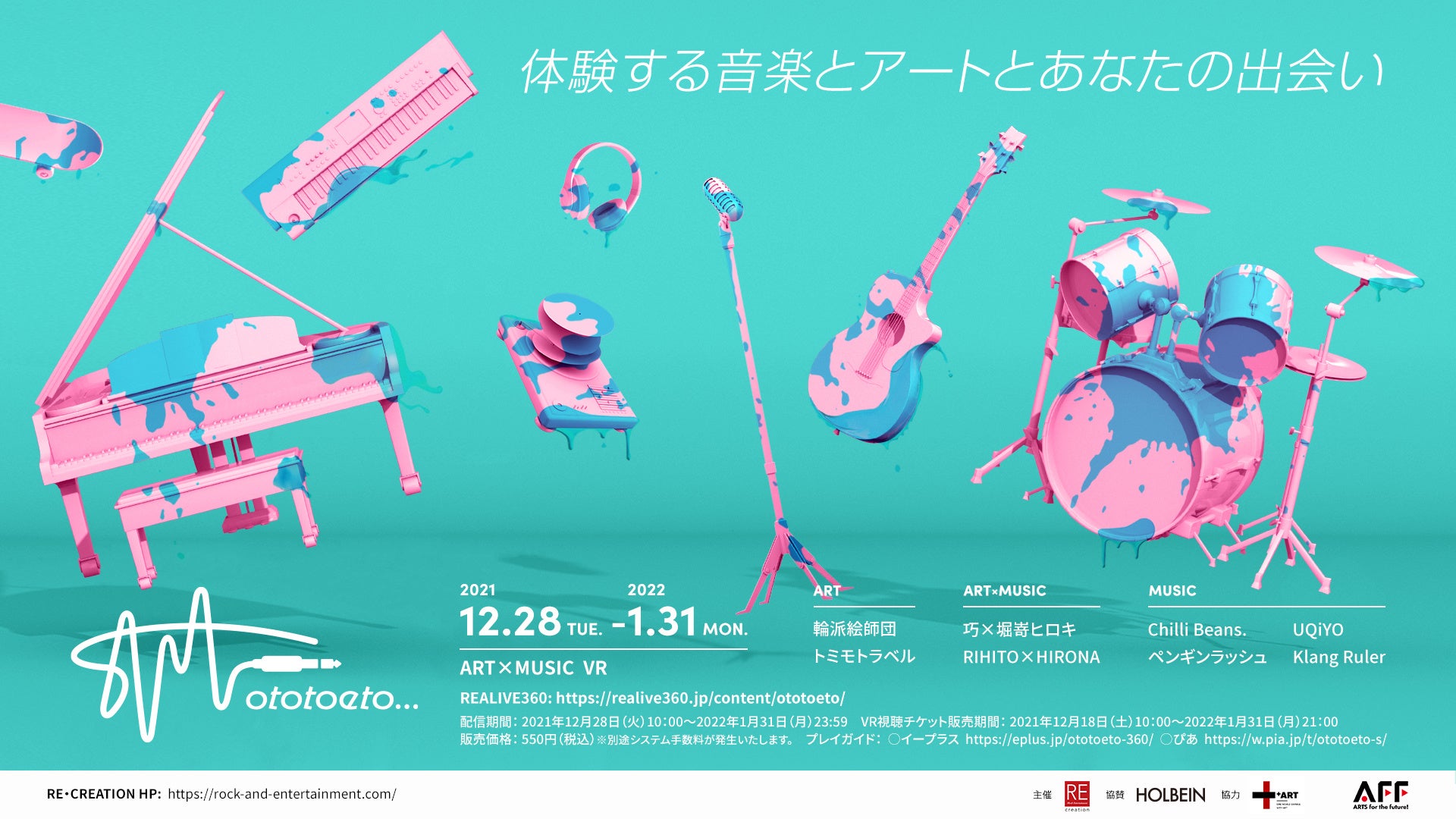 12月18日(土)にはstreaming+にて、12月28日(火)からはREALIVE360(VR)にて”ART×MUSIC”がテーマの企画ライブ「oto to eto... ~ART×MUSIC~」の配信を実施することをお知らせいたします。