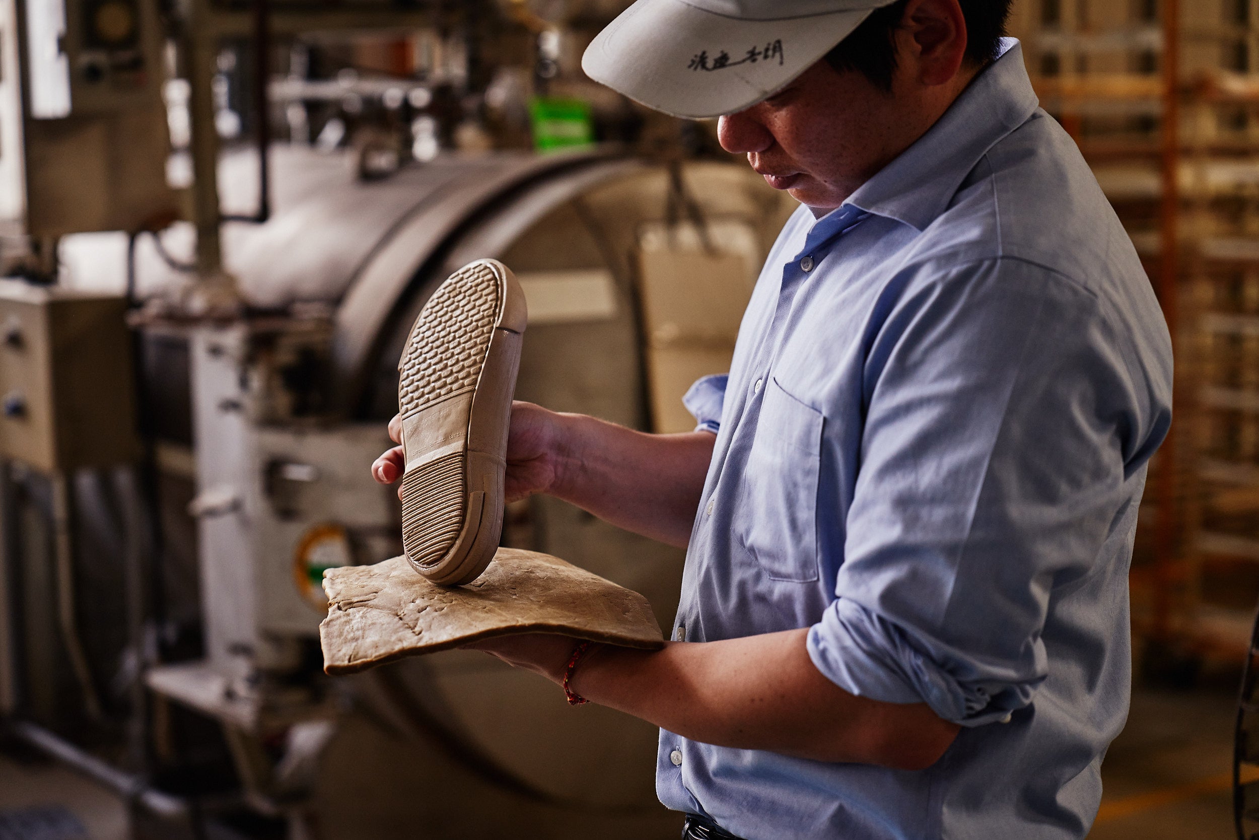 日進ゴム株式会社は1932年、地下足袋やゴム底キャンパスシューズの専門工場として立ち上がった会社です。現在、とくに滑らない靴を追及したHyperV(ハイパーV)などが多くメディアで取り上げられています。