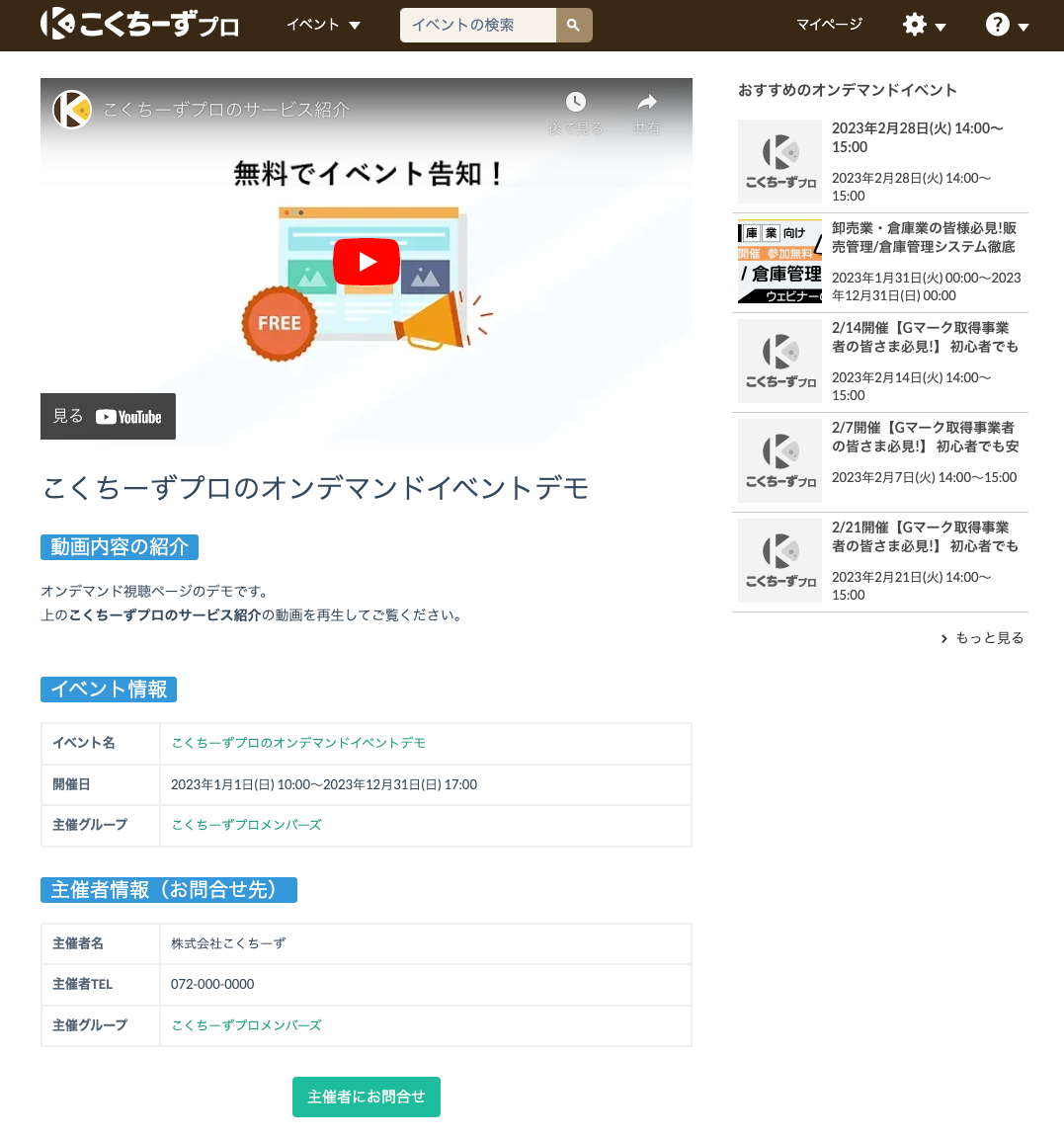 「こくちーずプロ」 https://www.kokuchpro.com/