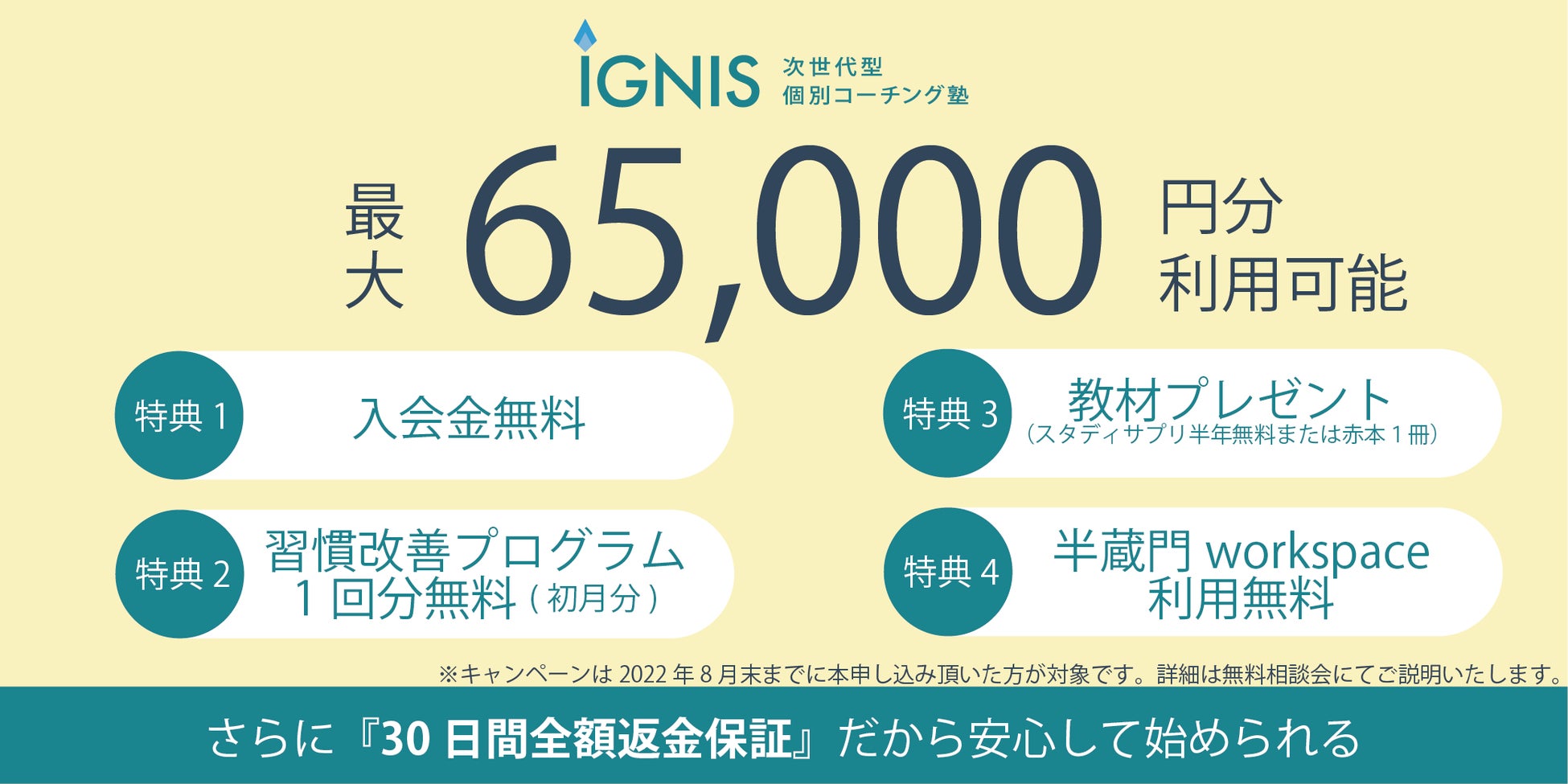 大学受験対策に特化した次世代型個別コーチング塾IGNISが、最大約65,000円分のコーチングサービスが利用できる夏の入会キャンペーンを実施。