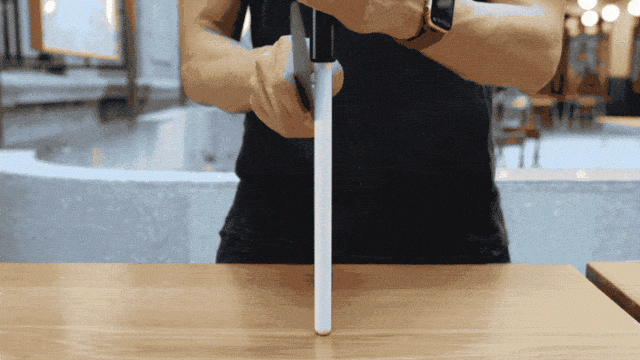 ・ 美しいナイフのフォルムが、どこからでも眺めることができる。