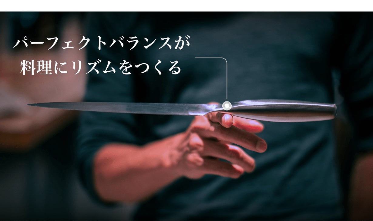 シームレス構造で凹凸や段差のない流れるようなデザインと、ハンドルの形状や大きさ、柄の長さや重心の微調整を幾度となく繰り返すことで、男性女性に関わらずベストなホールド感を実現しました。優れたバランス性とホールド感により取り回しの良さはもちろん、カット時に無駄な力を必要としません。国内外のミシュランシェフも魅了した忘れられない使い心地で、ストレスなく純粋にキッチンタイムを楽しむことができるます。