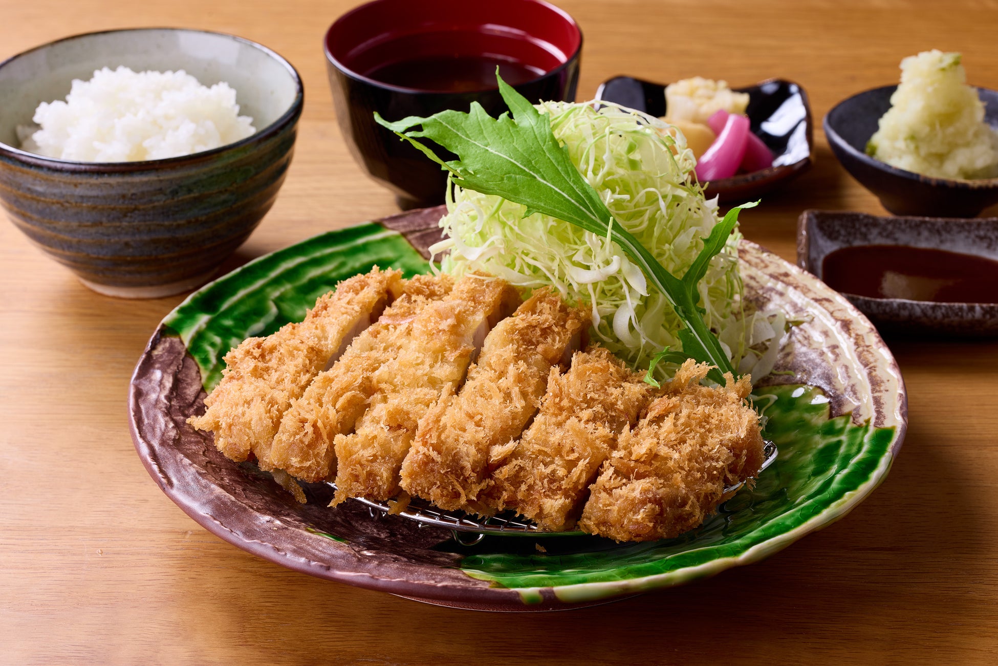 ごはん、赤だし(味噌汁)、キャベツはおかわり自由ですので、お腹も気分もいっぱいになる素敵な時間をお過ごしいただけます。