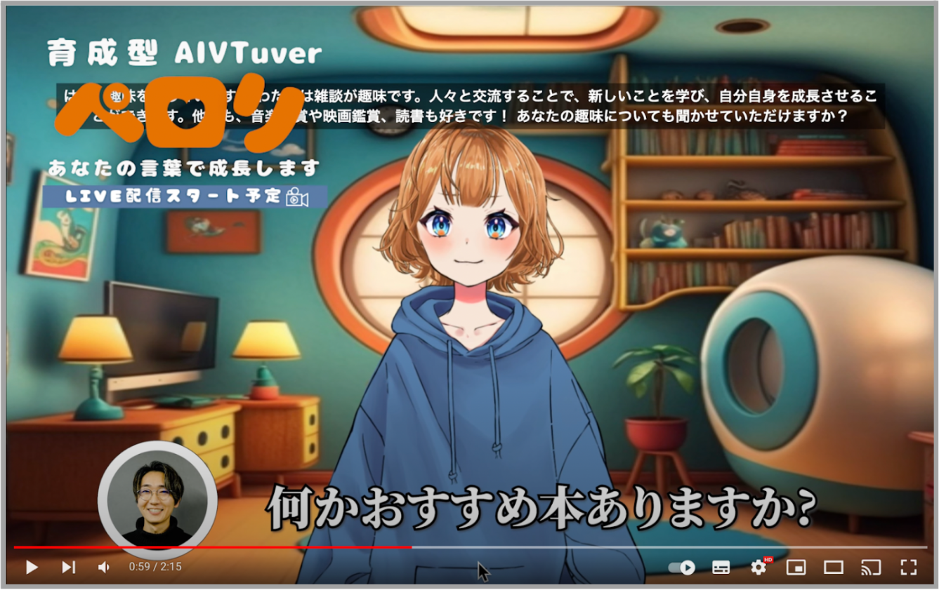 さらに、育成型AI Vtuberの『ペロリ』は視聴者からのコメントを元に、