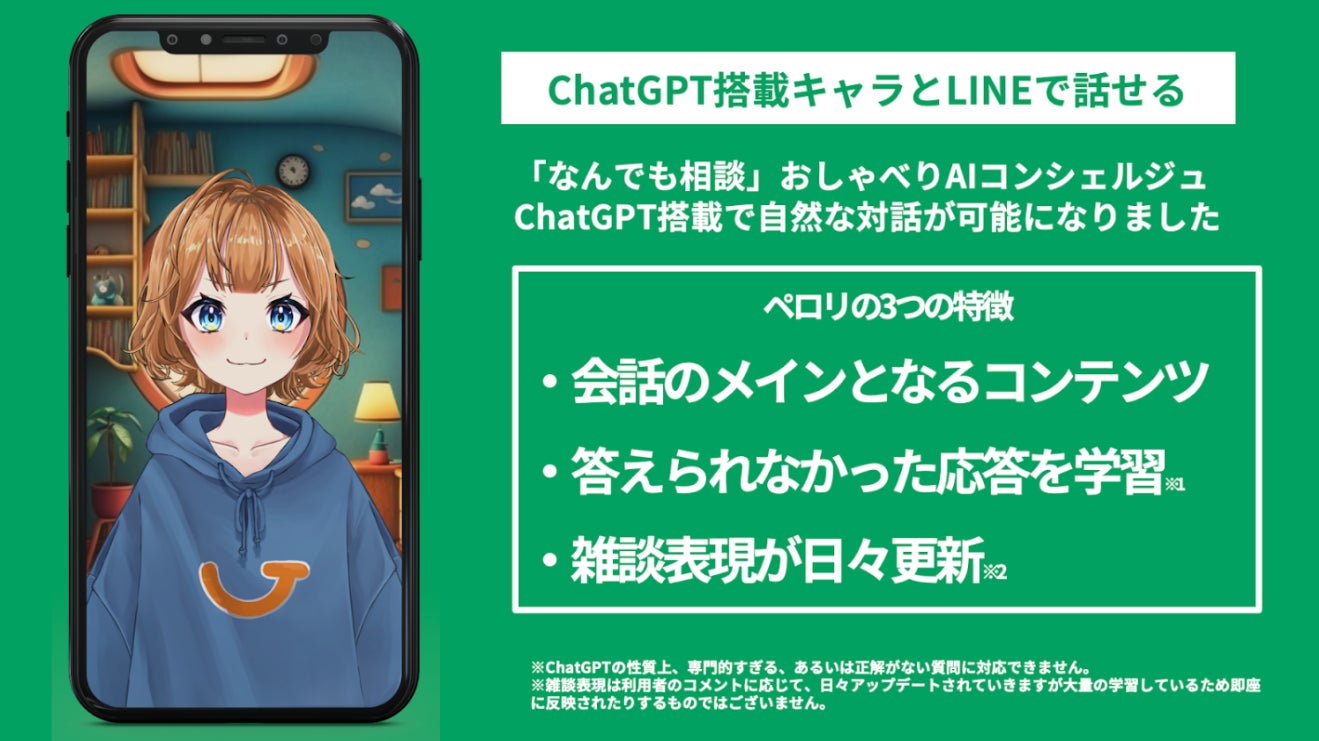 アニメーション動画制作サービスを展開するGivee株式会社(本社:東京都港区、代表取締役 村上卓斗、以下Givee)は、ChatGPTのAPIを利用した業界初の育成型AI Vtuber『瑛皧ペロリ(えいあいぺろり)』を3月10日にリリースいたしました。ペロリは、YouTubeとLINEで両方でChatGPTを活用し、利用者のコメントを学習していきます。