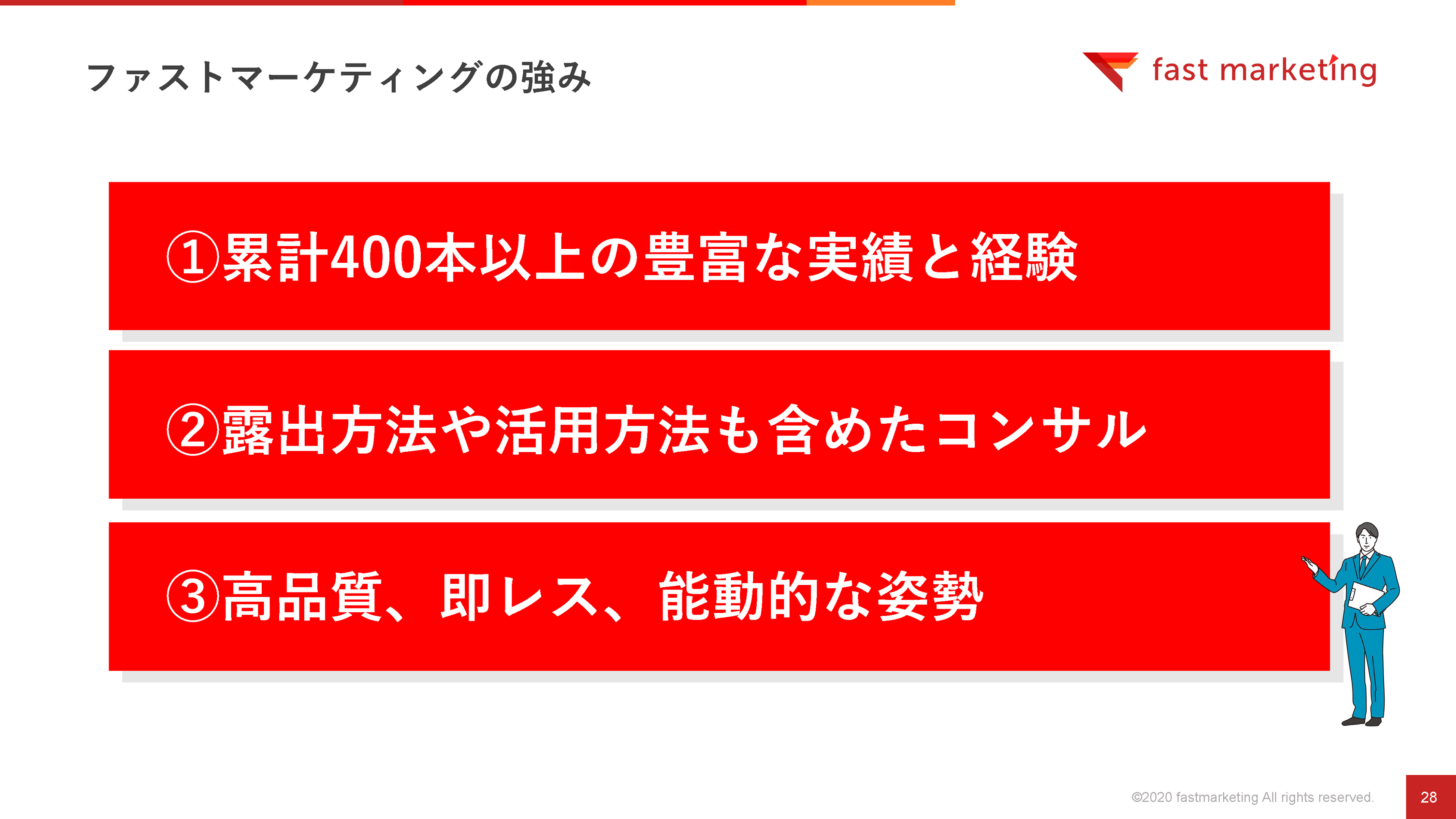 ファストマーケティングでは調査レポートの活用指南を受け付けております。