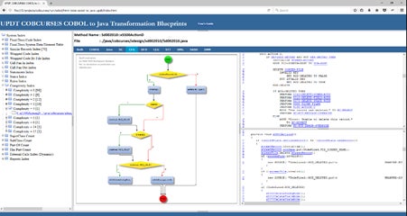 AS-IS(既存システム)を解析し文書化します。さらに、 “TO-BE” ドキュメント(変換された新しいシステム構造)を図示します。ここでは、変数、データ構造とデータフロー、制御フローと原因/結果モデル、複雑さの指標、外部インターフェイスの呼び出し、不使用コードと冗長コードの解析、類似・同一コードなどの解析が行えます。