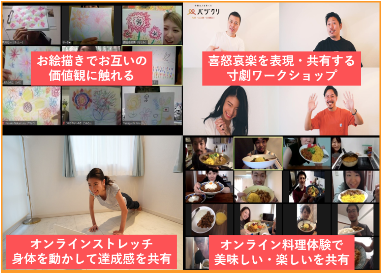 テレワークが促進される昨今、社内の飲み会やイベントの実施が難しく、社内コミュニケーションが不足している企業様に、社員の方々がオンラインで一緒に体験できる 「アソビ・学び・つながるプログラム」を提供しています。