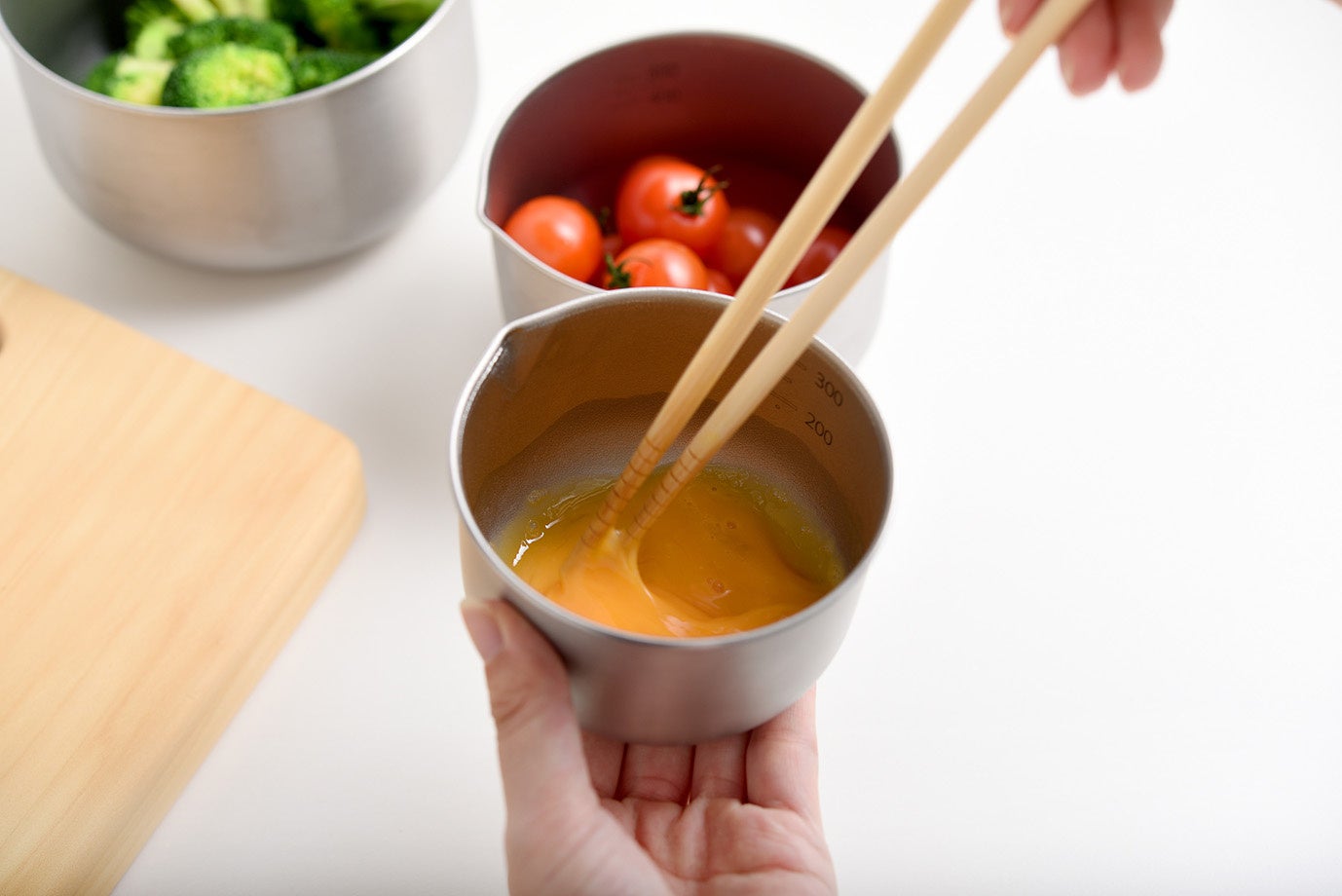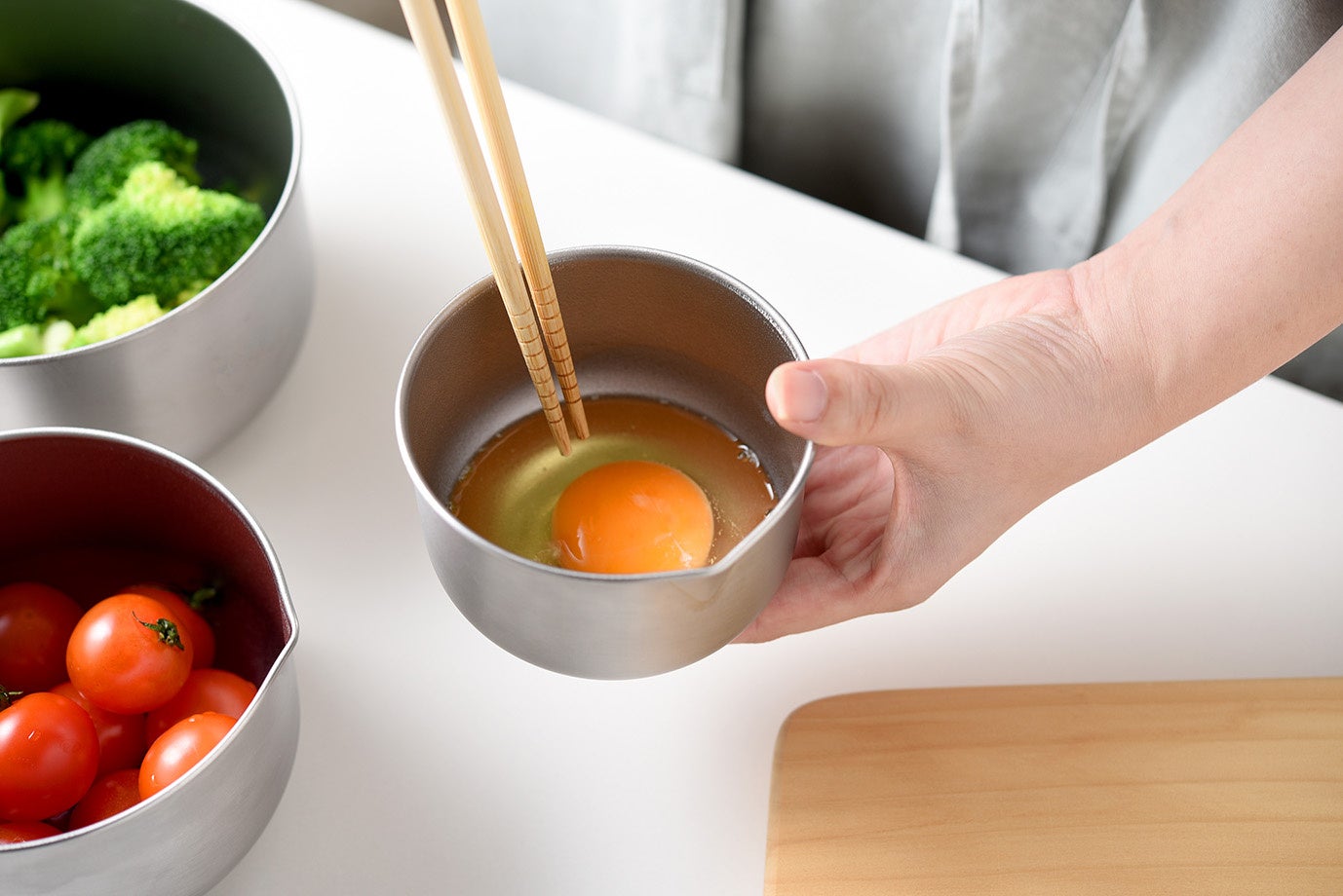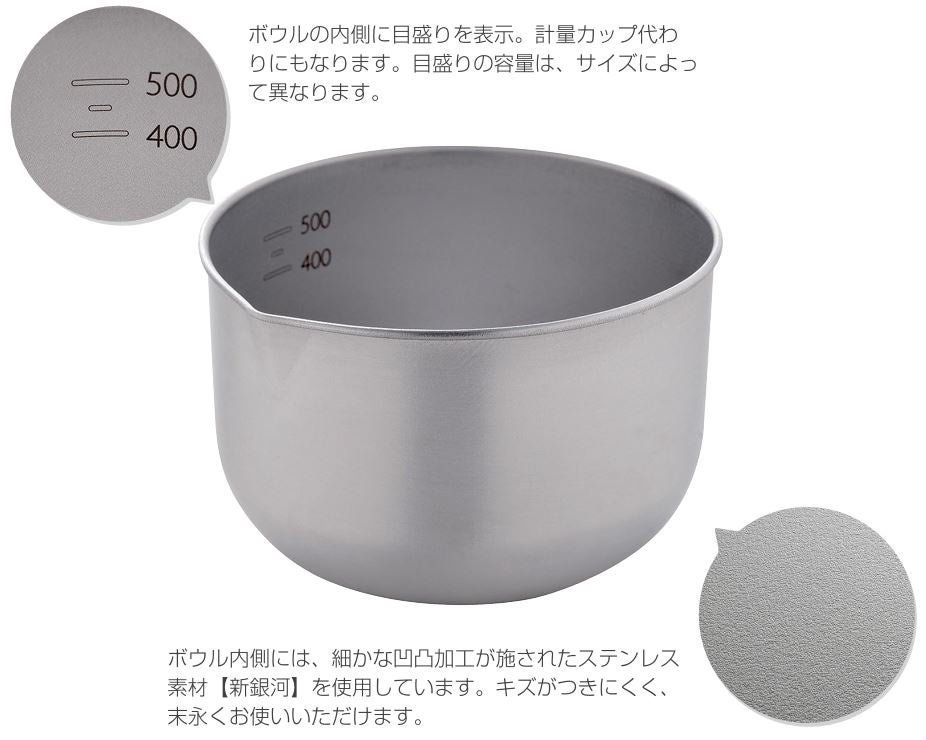 卵を混ぜたり、そのまま器としても使える9cm、1カップでお米すり切り2合が計量できたり、食材を和えたりするのに便利な11cm、出汁を注いだり、サラダを作ったりとたっぷり使える 14cmと、用途に合わせた3つのサイズから、お好みでチョイスすることができます。