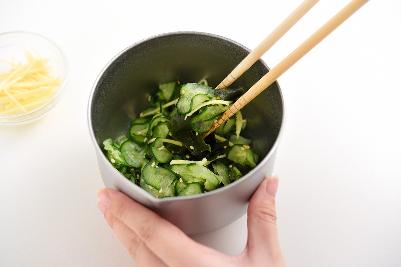 一般的なボウルよりもストレートな形状とすることで、食材が混ぜやすくなりました。