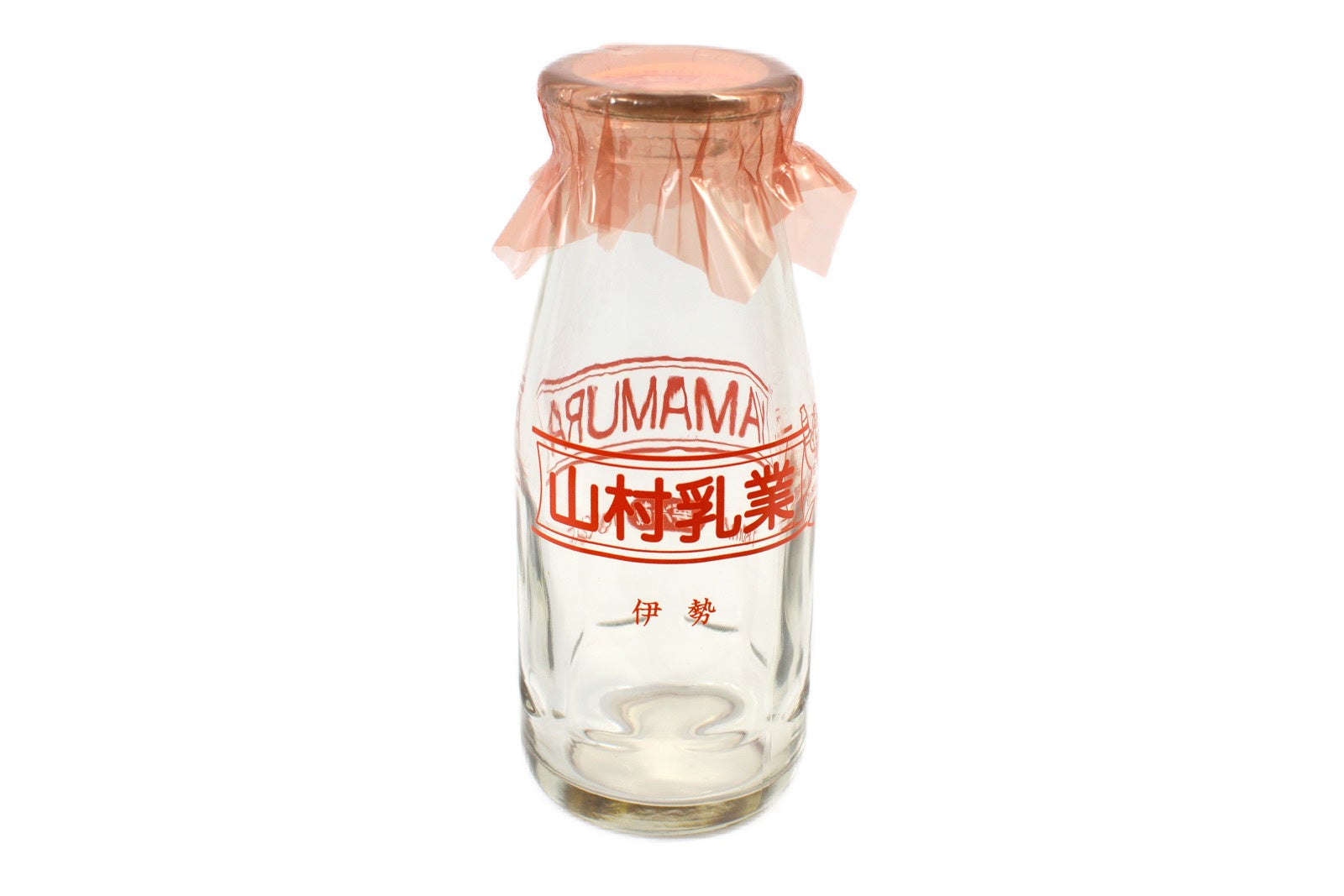 販売する瓶容器は、瓶底眼鏡という言葉があるように昔から変わらない重厚な瓶を採用、持ちやすいように瓶の下部が八角形になっています。瓶には赤色で弊社名、弊社の公式キャラクター「ヤッホーやまちゃん」、本社所在地である「伊勢」とデザインされています。また、弊社の乳製品で実際に使用する紙製の蓋に加え、透明のフードがつけられています。その他、透明キャップを1商品に1つ付属します。牛乳をおいしく飲むための専用グラスやお風呂上りの一杯用、食品などの保存容器、小物入れなど様々な用途としてご活用いただけます。