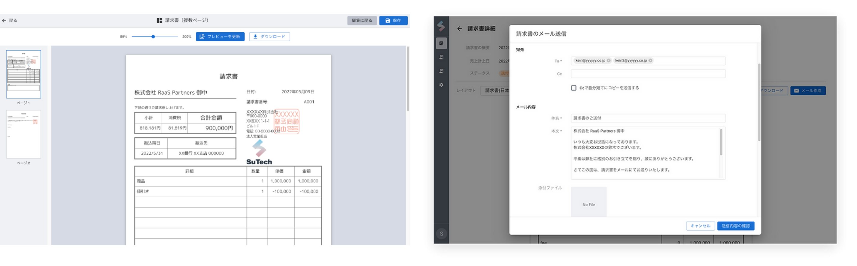 今回の連携により、請求書を自由にカスタマイズでき、請求書のステータスをfreee会計と同期することが可能です。また、メールによる請求書の発送及び、発送日時のスケジューリングも「Report as a Service」上で行えるため業務管理と効率化を実現します。