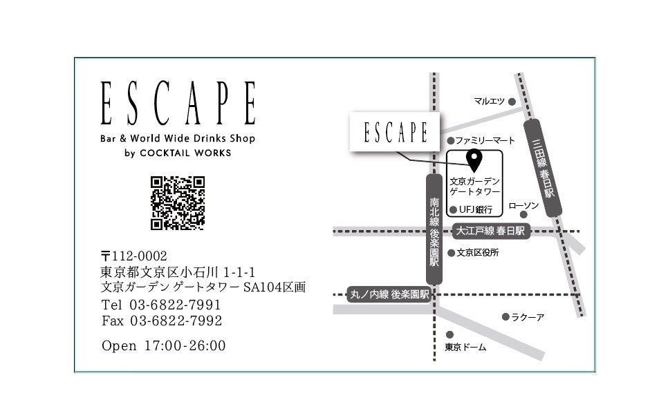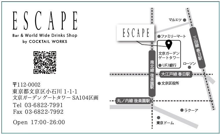 2022年1月14日、文京区小石川にバー「Escape」を開店を控える。