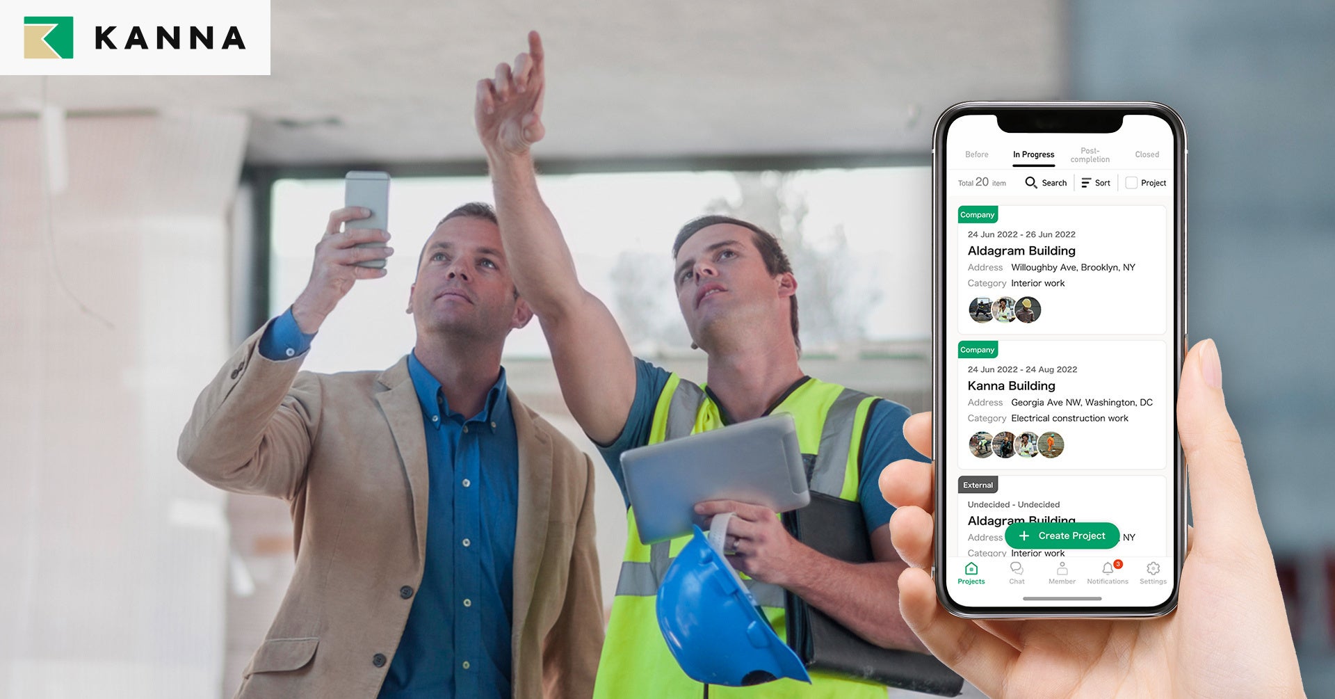KANNA(カンナ)は、 建設業、不動産業、製造業など、世界中のノンデスクワーク業界における現場の生産性アップを実現する「プロジェクト管理アプリ」です。